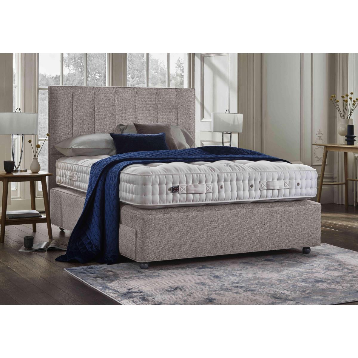 For years of guaranteed comfort, choose Vispring. The handcrafted Vispring Elite combines Vispring’s pioneering vanadium steel springs with cooling, moisture wicking fillings for an all-natural, deeply comfortable night’s sleep. The luxurious mattress fillings include platinum certified British fleece wool and cotton layered around a honeycomb of vanadium springs in individual calico pockets. The pocket sprung bases are beautifully upholstered in a choice of fine fabrics, with optional drawer storage. Surrender to the unparalleled comfort of a Vispring bed. Headboard shown available separately. Experience true luxury with the Vispring Elite pocket sprung divan set. The mattresses with all-natural and cooling fillings are paired with bases in a wide choice of colours and fabrics. Why you’ll love it Handcrafted in the UK to the highest quality. In a choice of four comfort levels. Coir, Platinum certified British fleece wool and cotton filings. Fillings wick away moisture, for a fresher and cooler sleep. 6-turn vanadium pocket springs offer responsive support. High quality ticking, hand tufted with 2 rows of hand side-stitching. Strong, wool-upholstered borders with air vents and handles. Drawer storage options are available. Base upholstered in a choice of luxury fabrics. What you need to know Mattress type: Pocket spring. Mattress depth: 21cm + 6cm doming Mattress firmness:Soft, Medium, Firm, Extra Firm. Split tension available in King and Super King size. Mattress springs: 1254 vanadium steel, 6 turn pocket springs in king size, in calico pockets. Mattress fillings: Coir, Platinum certified British fleece wool and cotton. Mattress cover:High quality ticking. Sizes: Super king, king, double, small double, single. Requires turning: Yes. Turn with the seasons for optimum performance. Base construction: Traditional sprung platform base. Solid timber frame, FSC certified. Base springs: 600 hand nested pocket springs in king size. Base fillings: Coir, British fleece wool and cotton. Mattress care:Air for 4 hours before using to remove any odour. Allow at least 4 hours for springs to settle and for mattress to attain its full size. Indentations caused by settlement of fillings or body weight are normal and are not considered defects. Rotate regularly, turn seasonally.