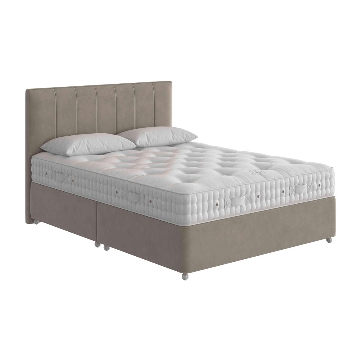 For years of guaranteed comfort, choose Vispring. The handcrafted Vispring Elite combines Vispring’s pioneering vanadium steel springs with cooling, moisture wicking fillings for an all-natural, deeply comfortable night’s sleep. The luxurious mattress fillings include platinum certified British fleece wool and cotton layered around a honeycomb of vanadium springs in individual calico pockets. The pocket sprung bases are beautifully upholstered in a choice of fine fabrics, with optional drawer storage. Surrender to the unparalleled comfort of a Vispring bed. Headboard shown available separately. Experience true luxury with the Vispring Elite pocket sprung divan set. The mattresses with all-natural and cooling fillings are paired with bases in a wide choice of colours and fabrics. Why you’ll love it Handcrafted in the UK to the highest quality. In a choice of four comfort levels. Coir, Platinum certified British fleece wool and cotton filings. Fillings wick away moisture, for a fresher and cooler sleep. 6-turn vanadium pocket springs offer responsive support. High quality ticking, hand tufted with 2 rows of hand side-stitching. Strong, wool-upholstered borders with air vents and handles. Drawer storage options are available. Base upholstered in a choice of luxury fabrics. What you need to know Mattress type: Pocket spring. Mattress depth: 21cm + 6cm doming Mattress firmness:Soft, Medium, Firm, Extra Firm. Split tension available in King and Super King size. Mattress springs: 1254 vanadium steel, 6 turn pocket springs in king size, in calico pockets. Mattress fillings: Coir, Platinum certified British fleece wool and cotton. Mattress cover:High quality ticking. Sizes: Super king, king, double, small double, single. Requires turning: Yes. Turn with the seasons for optimum performance. Base construction: Traditional sprung platform base. Solid timber frame, FSC certified. Base springs: 600 hand nested pocket springs in king size. Base fillings: Coir, British fleece wool and cotton. Mattress care:Air for 4 hours before using to remove any odour. Allow at least 4 hours for springs to settle and for mattress to attain its full size. Indentations caused by settlement of fillings or body weight are normal and are not considered defects. Rotate regularly, turn seasonally.