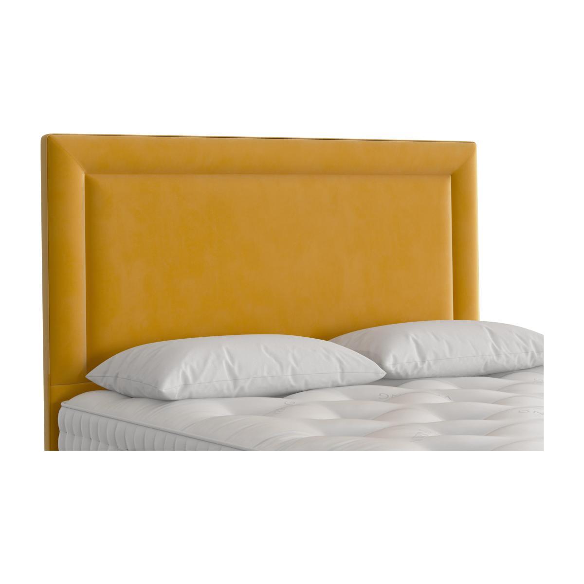 Vispring's, the Helios's deep cushioning and soft upholstery make it a luxurious choice. The simple contemporary design with border makes a strong design statement, perfect when partnered with one of Vispring's divan beds. Upholstered in a wide choice of beautiful fabrics and colours. Add a luxurious finishing touch to your bedroom. A contemporary update on the classic edged headboard. Luxurious cushioning. Covered in a soft, Vispring bespoke fabric. Sturdy, FSC-certified wood frame. Attaches easily to your bed. Supplied with Euro-style attachments. Works beautifully with Vispring divans.