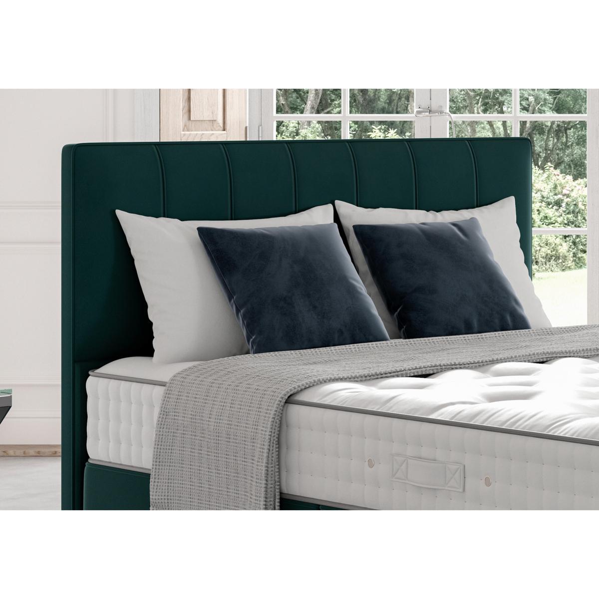 The Hera headboard’s deep cushioning and classic vertical fluting makes a very sophisticated design statement, particularly when teamed with one of Vi-Spring's classic divan beds or any standard sized divan bed. The gorgeous Vispring Hera headboard is upholstered in a wide choice of fine fabrics and lovely colours. The perfect way to add that luxurious finishing touch into your bedroom. Sophisticated headboard with clean lines. Stylish vertical fluting. Deeply padded for comfort. Covered in a Vispring bespoke faux suede. Attaches easily to your bed. UK attachments supplied, Euro-style attachments available. Works beautifully with Vispring divans. Colour displayed is. Gem Shell 2024.