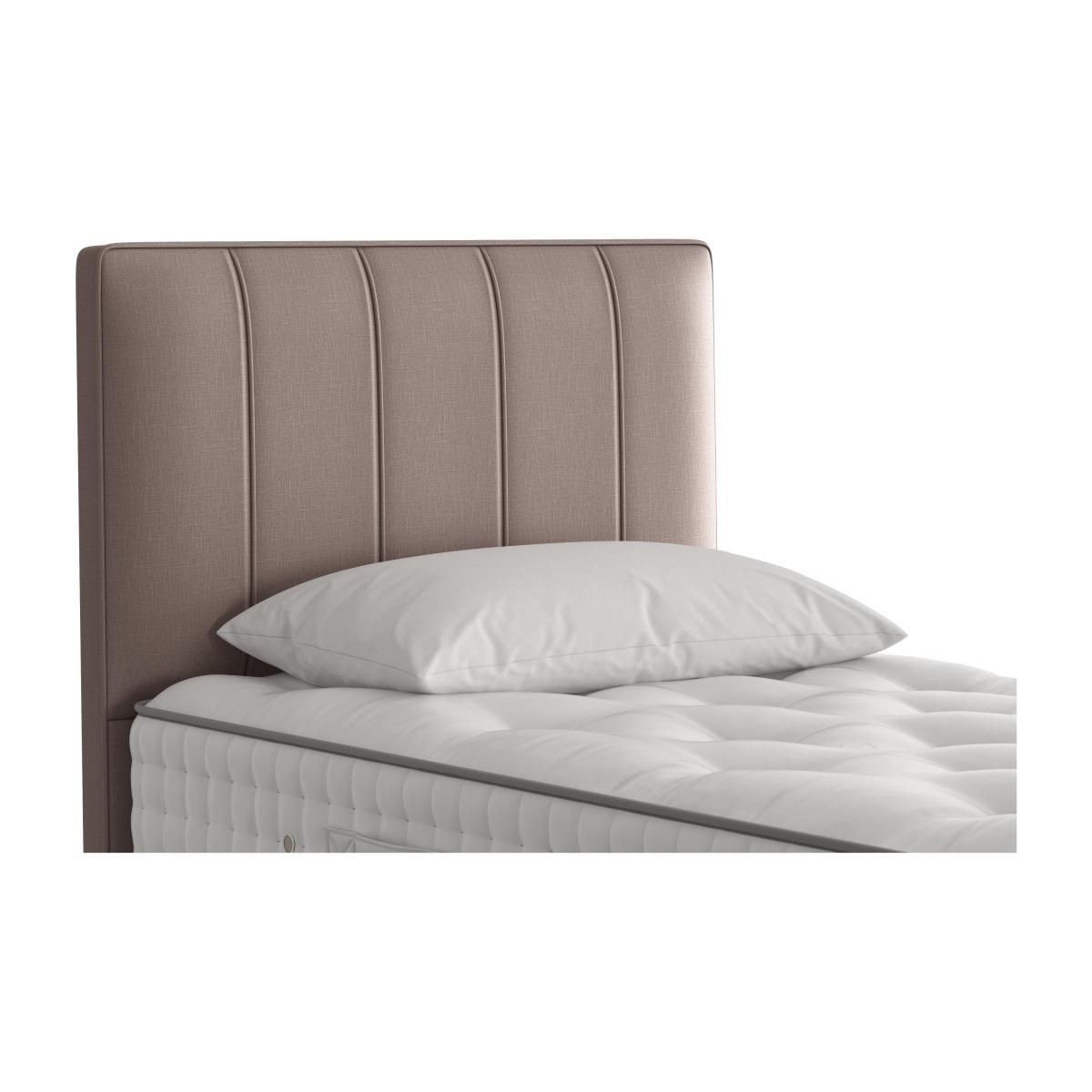 The Hera headboard’s deep cushioning and classic vertical fluting makes a very sophisticated design statement, particularly when teamed with one of Vi-Spring's classic divan beds or any standard sized divan bed. The gorgeous Vispring Hera headboard is upholstered in a wide choice of fine fabrics and lovely colours. The perfect way to add that luxurious finishing touch into your bedroom. Sophisticated headboard with clean lines. Stylish vertical fluting. Deeply padded for comfort. Covered in a Vispring bespoke faux suede. Attaches easily to your bed. UK attachments supplied, Euro-style attachments available. Works beautifully with Vispring divans. Colour displayed is. Gem Shell 2024.