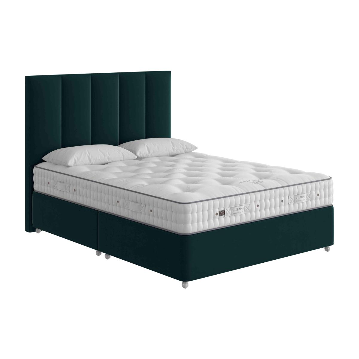 If you’re investing in a great night’s sleep, choose the handcrafted luxury of Vispring. Each Herald Superb bed combines a cabinet quality divan base with a luxurious pocket sprung mattress. The mattresses generously layer all natural British fleece wool, horsehair and cotton around hand nested vanadium pocket springs. The sprung divan bases are upholstered in fine fabric and include a choice of drawer storage. Headboard shown available separately. The Vispring Herald Superb divan set has luxurious British fleece wool and cotton fillings. Superbly sprung, for responsive support where you need it most. Why you’ll love it Vispring luxury with a contemporary oak-legged base. Choose from four comfort levels. With natural British fleece wool, cotton, and horsehair. Vispring’s vanadium pocket springs offer responsive support. Finest quality ticking, hand tufted with wool washers. 2 rows of hand side-stitching for edge to edge support. Strong, wool-upholstered borders with air vents and handles. Drawer storage options are available. Base is in a wide choice of beautiful Vispring fabrics. What you need to know Mattress type: Pocket spring. Mattress depth: 21cm + 6cm doming Mattress firmness:Soft, Medium, Firm, Extra Firm. Split tension available in King and Super King size. Mattress springs: 1476 vanadium steel, 6 turn pocket springs in king size, in calico pockets. Mattress fillings: Bonded British fleece wool and cotton, horsehair, blended British fleece wool and cotton. Mattress cover:High quality ticking. Sizes: Super king, king, double, small double, single. Requires turning: Yes. Turn with the seasons for optimum performance. Base construction: Traditional sprung platform base. Solid timber frame, FSC certified. Base springs: 950 hand nested pocket springs in king size. Base fillings: Coir, blended British fleece wool and cotton. Mattress care:Air for 4 hours before using to remove any odour. Allow at least 4 hours for springs to settle and for mattress to attain its full size. Indentations caused by settlement of fillings or body weight are normal and are not considered defects. Rotate regularly, turn seasonally.