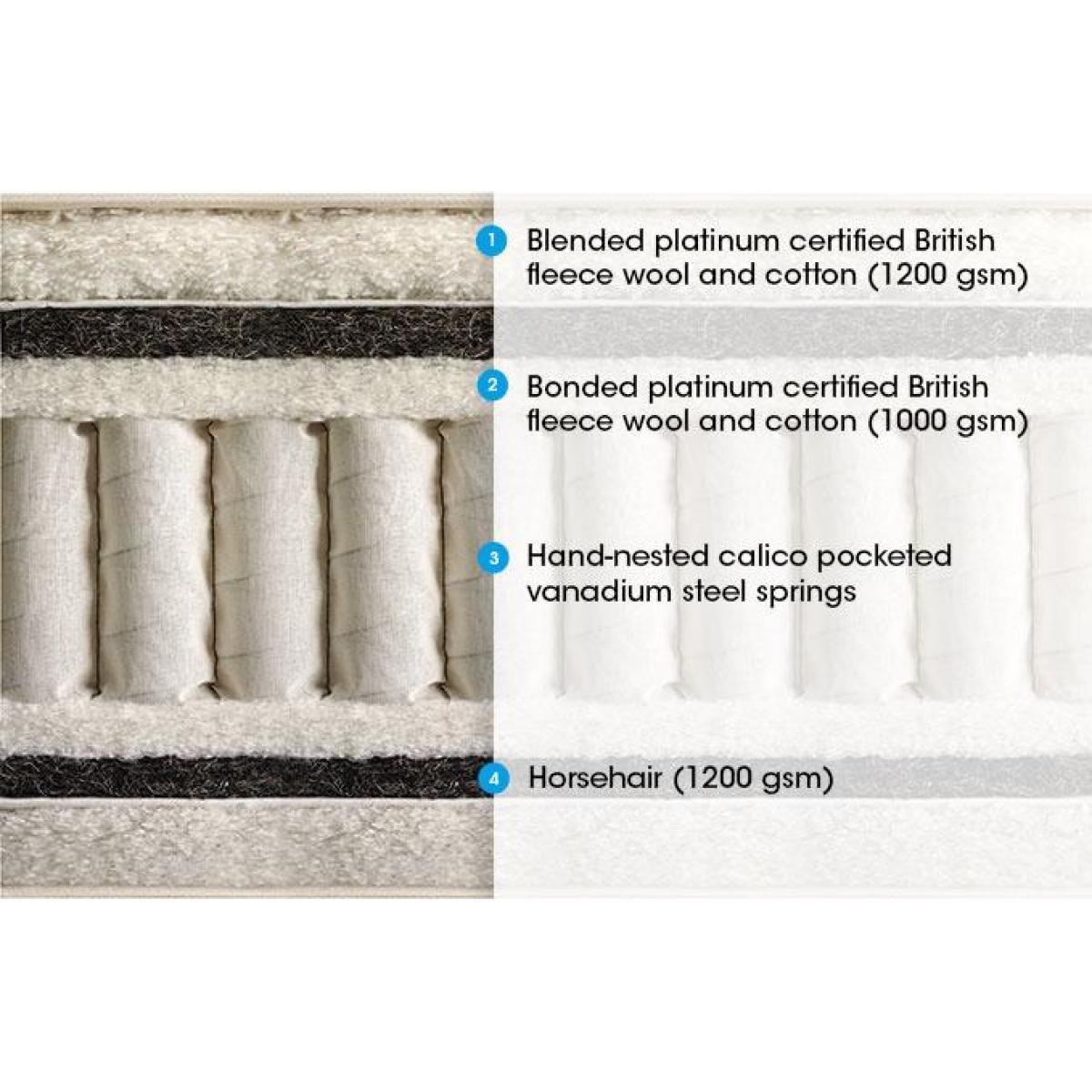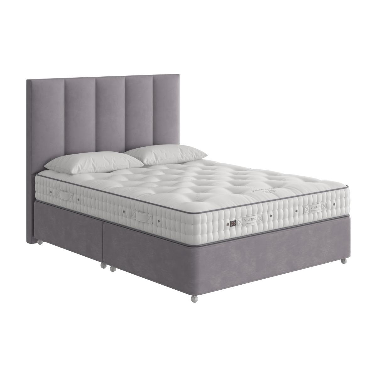 If you’re investing in a great night’s sleep, choose the handcrafted luxury of Vispring. Each Herald Superb bed combines a cabinet quality divan base with a luxurious pocket sprung mattress. The mattresses generously layer all natural British fleece wool, horsehair and cotton around hand nested vanadium pocket springs. The sprung divan bases are upholstered in fine fabric and include a choice of drawer storage. Headboard is an optional extra. The handcrafted Vispring Herald Superb pocket sprung divan set is, by any measure, superb. It features a 21 cm deep hand tufted mattress with 1476 six-coil vanadium steel pocket springs in King size, hand nested in calico. It’s filled with bonded Platinum Certified British fleece wool and cotton, horsehair, and blended Platinum Certified British fleece wool and cotton. Finished with a wool worsted ticking cover, this luxury mattress has wool borders, two rows of hand side-stitching, air vents and handles. Contemporary in style, the timber-framed upholstered sprung divan base is set on taller oak feet and has optional storage drawers. With 950 hand nested springs in King size, it’s filled with coir and a blend of British fleece wool and cotton. Shown here in. Plush Royal- Dark Blue (2115. ) The Vispring Herald Superb divan set is one of several handcrafted Vispring divan sets. Product images are representative. Find out more. Did you know?. The mattress should be aired for four hours after delivery to freshen and remove any aroma from storage. It may take time for your mattress to attain its full size once the springs have settled to the correct position. This is due to the mattress being upright during transit. Settlement of fillings and indentations caused by body weight compressing the fillings are natural and not considered defects. This can be minimised by regular rotating (unless yours is a dual tension mattress).