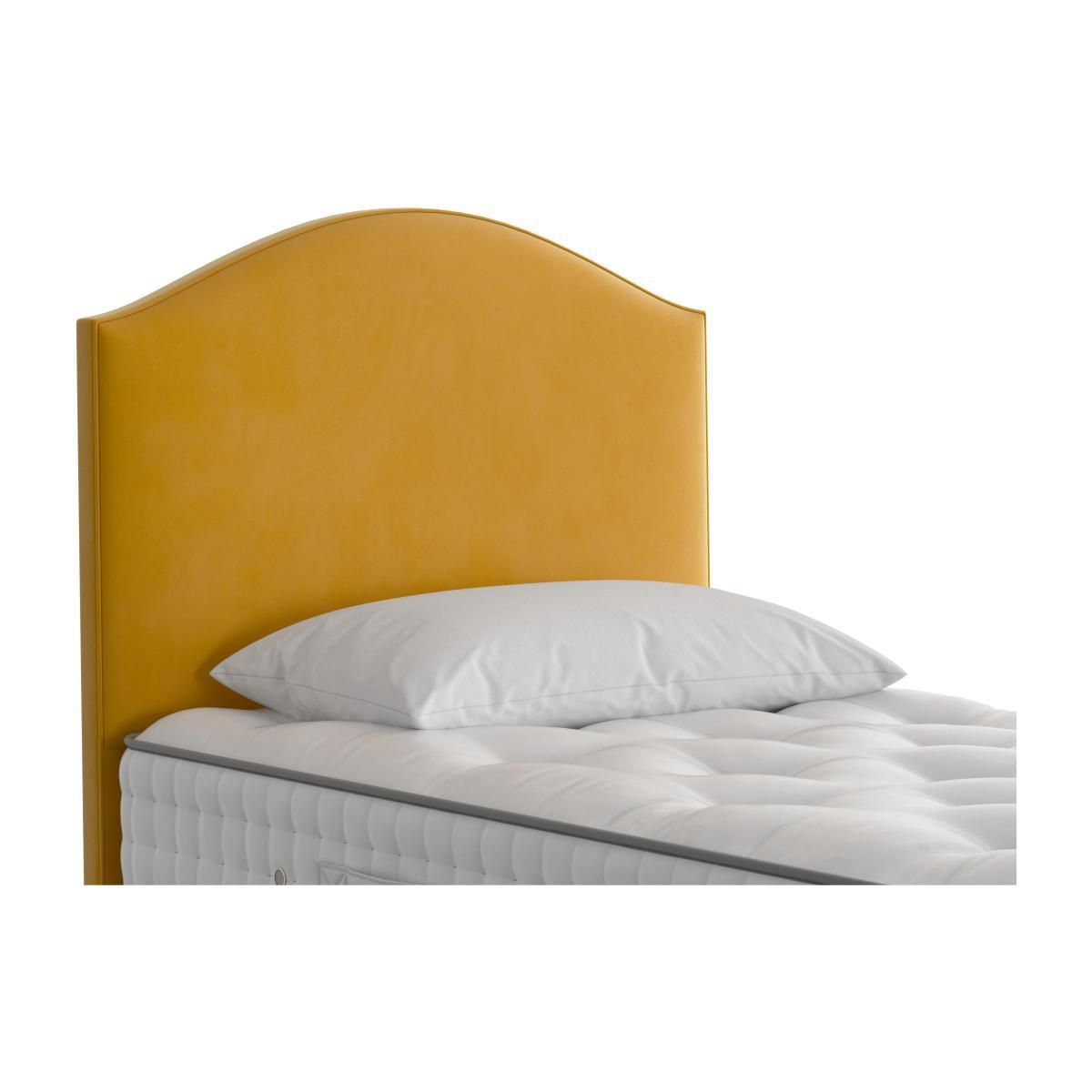 The Vispring Iris headboards attractive arched top design adds sophistication and elegance to both traditional and modern bedrooms. The headboard is generously cushioned for your comfort and upholstered in a wide choice of beautiful fabrics and colours. A perfectly luxurious finishing touch for your divan bed. Traditional-style headboard with arched profile. Deeply padded. Exceptional comfort and support. Covered in an elegant, Vispring bespoke fabric. Attaches easily to your bed. UK attachments supplied, Euro-style attachments available. Works beautifully with Vispring divans. Colour displayed is. Gem Shell 2024.