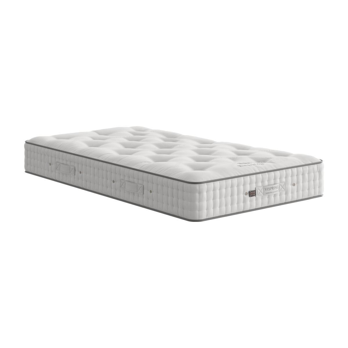 Another masterpiece from Vispring. The luxurious Kingsbridge mattress boasts all natural, wool and horsetail fillings and those famous vanadium steel pocket springs. Why you’ll love it. Deeply luxurious pocket sprung mattress from Vispring. In a choice of comfort levels. Hand-teased horsetail fillings blended with Devonshire wool. Feel the support of Vispring’s famous vanadium pocket springs. Hand tufted with felt washers, 3 rows of hand side-stitching. Protective wool-upholstered borders with air vents and handles. What you need to know. Mattress type: Pocket spring. Depth: 23cm + 6cm doming. Firmness: Soft, Medium, Firm, Extra Firm. Split tension available in King and Super King size. 2030 vanadium steel, 6 turn pocket springs in king size, in calico pockets. Fillings: British fleece wool, hand-teased horsetail blended with Devonshire wool. Cover: fine quality ticking. Sizes: Super king, king, double, small double, single. Requires turning: Yes. Turn with the seasons for optimum performance. Mattress care: Air for 4 hours before using to remove any odour. Allow at least 4 hours for springs to settle and for mattress to attain its full size. Indentations caused by settlement of fillings or body weight are normal and are not considered defects. If used on a slatted bed frame, slats must be no more than 7 cm apart. Rotate regularly.