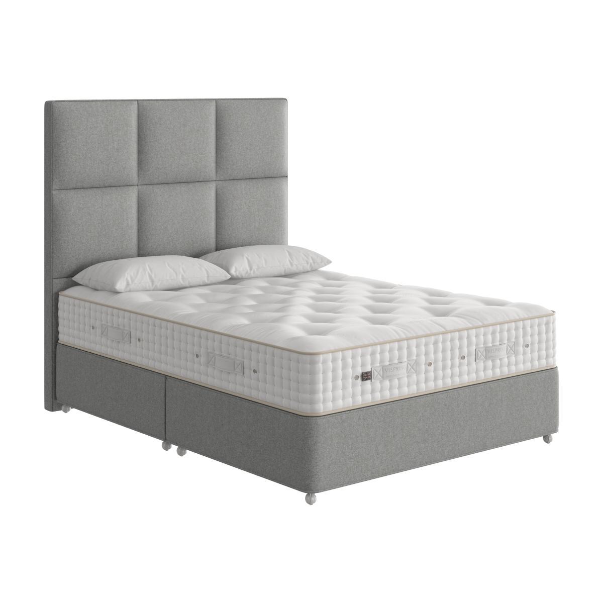 Headboard shown available separately. The Vispring Magnificence divan base and mattress combine the famous Vispring comfort with contemporary style. In a wide choice of fine fabrics and colours. Why you’ll love it. Handcrafted Vispring divan in a choice of comfort levels. In a choice of comfort levels. All natural fillings include Moosburger® horsetail, cashmere and mohair. Feel fully supported by Vispring’s famous vanadium springs. Hand-tied woollen tufts, 5 rows of hand side stitching. Protective wool and coir upholstered borders with air vents and handles. Drawer storage options are available. Divan base is upholstered in a choice of fine fabrics. What you need to know. Mattress type: Pocket spring. Mattress depth: 23cm + 6cm doming. Mattress firmness: Soft, Medium, Firm, Extra Firm. Split tension available in King and Super King size. Mattress springs: 2812 vanadium steel, 6 turn pocket springs in king size. Mattress fillings: hand-opened Austrian Moosburger® horsetail, hand-teased real Shetland wool blended with cashmere and mohair, blended real Shetland wool and cotton. Mattress cover: finest quality ticking. Sizes: Super king, king, double, small double, single. Requires turning: Yes. Turn with the seasons for optimum performance. Base construction: Traditional sprung platform base. Solid timber frame, FSC certified. Base springs: 2010 hand nested pocket springs in 2 layers in king size. Base fillings: Horsehair, blended British fleece wool and cotton. Mattress care: Air for 4 hours before using to remove any odour. Allow at least 4 hours for springs to settle and for mattress to attain its full size. Indentations caused by settlement of fillings or body weight are normal and are not considered defects. If used on a slatted bed frame, slats must be no more than 7 cm apart. Rotate regularly.