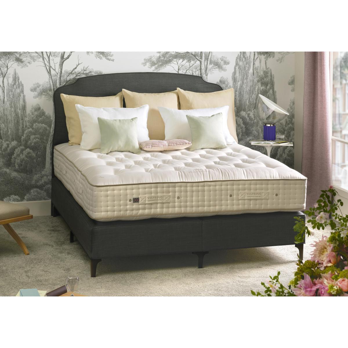 Headboard shown available separately. The Vispring Magnificence divan base and mattress combine the famous Vispring comfort with contemporary style. In a wide choice of fine fabrics and colours. Why youll love it Handcrafted Vispring divan in a choice of comfort levels. In a choice of comfort levels. All natural fillings include Moosburger horsetail, cashmere and mohair. Feel fully supported by Visprings famous vanadium springs. Hand- tied woollen tufts, 5 rows of hand side stitching. Protective wool and coir upholstered borders with air vents and handles. Drawer storage options are available. Divan base is upholstered in a choice of fine fabrics. What you need to know Mattress type: Pocket spring. Mattress depth: 23cm + 6cm doming. Mattress firmness:Soft, Medium, Firm, Extra Firm. Split tension available in King and Super King size. Mattress springs: 2812 vanadium steel, 6 turn pocket springs in king size. Mattress fillings: hand- opened Austrian Moosburger horsetail, hand- teased real Shetland wool blended with cashmere and mohair, blended real Shetland wool and cotton. Mattress cover: finest quality ticking. Sizes: Super king, king, double, small double, single. Requires turning: Yes. Turn with the seasons for optimum performance. Base construction: Traditional sprung platform base. Solid timber frame, FSC certified. Base springs: 2010 hand nested pocket springs in 2 layers in king size. Base fillings: Horsehair, blended British fleece wool and cotton. Mattress care:Air for 4 hours before using to remove any odour. Allow at least 4 hours for springs to settle and for mattress to attain its full size. Indentations caused by settlement of fillings or body weight are normal and are not considered defects. If used on a slatted bed frame, slats must be no more than 7 cm apart. Rotate regularly.