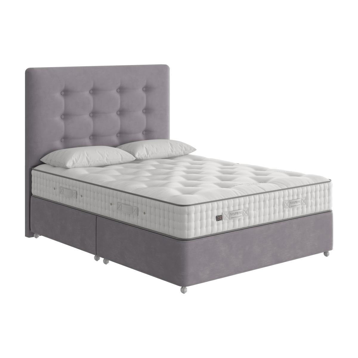 Headboard shown available separately. Choose the handcrafted Vispring Regal Superb divan set for pocket sprung, responsive comfort for years to come. In a choice of comfort levels, with all natural, luxury fillings. Why youll love it Soft and springy support, luxuriously stylish too. Handcrafted in the UK, in a choice of comfort levels. With British fleece wool, Shetland wool, horsetail and cotton. 6- turn vanadium pocket springs for body responsive support. Fine- quality, soft touch mattress ticking. Hand tufted with felt washers, 3 rows of hand side- stitching. Strong, wool- upholstered borders with air vents and handles. Drawer storage options are available. Divan base in a choice of luxury fabrics. What you need to know Mattress type: Pocket spring. Mattress depth: 23cm + 6cm doming. Mattress firmness:Soft, Medium, Firm, Extra Firm. Split tension available in King and Super King size. Mattress springs: 1720 vanadium steel, 6 turn pocket springs in king size, in calico pockets. Mattress fillings: Bonded British fleece wool and cotton, South American long stranded horsetail blended with British fleece wool, blended real Shetland wool and cotton. Mattress cover:Fine quality ticking. Sizes: Super king, king, double, small double, single. Requires turning: Yes. Turn with the seasons for optimum performance. Base construction: Traditional sprung platform base. Solid timber frame, FSC certified. Base springs: 950 hand nested pocket springs in king size. Base fillings: Coir, British fleece wool and cotton. Mattress care:Air for 4 hours before using to remove any odour. Allow at least 4 hours for springs to settle and for mattress to attain its full size. Indentations caused by settlement of fillings or body weight are normal and are not considered defects. Rotate regularly, turn seasonally.