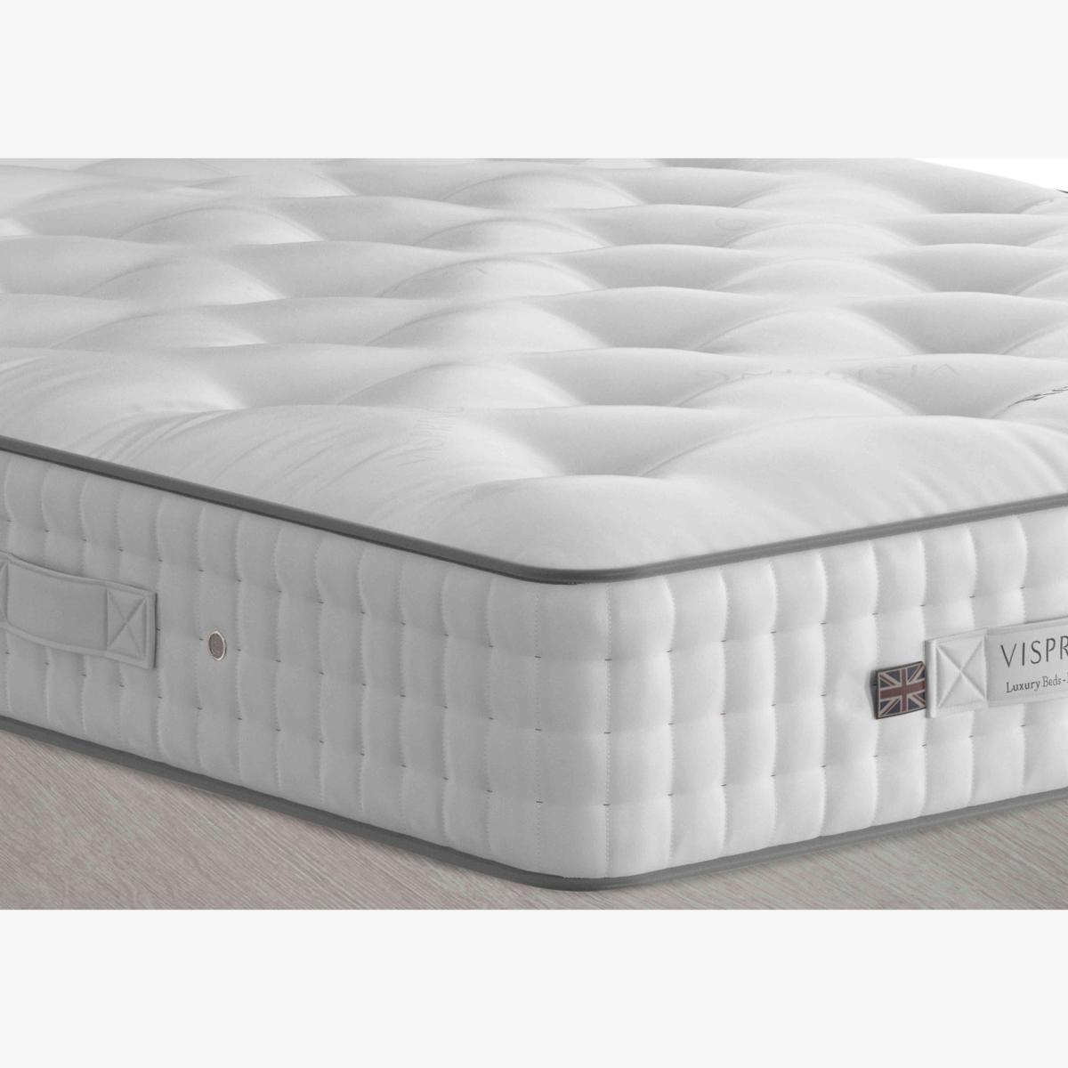 It’s the vanadium springs, each with 6 coils, that make the Vispring Regal Superb divan beds so profoundly comfortable. Each individual spring is hand-nested within a honeycomb of calico pockets, surrounded by layers of luxurious fillings include fleece wool, Shetland wool, South American long stranded horsetail and cotton. The sprung bases are upholstered in a wide choice of Vispring’s finest fabrics, with the option of drawer storage. Beautifully handcrafted here in the UK. Handcrafted sprung mattress from Vispring with all-natural fillings Fillings include fleece wool, Shetland wool, horsetail and cotton Wonderful support from 1720 vanadium steel springs (5 foot size) Springs, each with six coils, are hand-nested in calico pockets Mattress is covered in soft, finest-quality ticking Hand tufted and with three rows of hand side-stitching Wool upholstered borders have air vents and handles Did you know? : Your mattress may have a faint odour which will dissipate after airing. The mattress should be aired for four hours after delivery. It may take time for your mattress to attain its full size once the springs have settled to the correct position. This is due to the mattress being upright during transit. Settlement of fillings and indentations caused by body weight compressing the fillings are natural and not considered defects. This can be minimised by regularly turning and rotating the mattress.