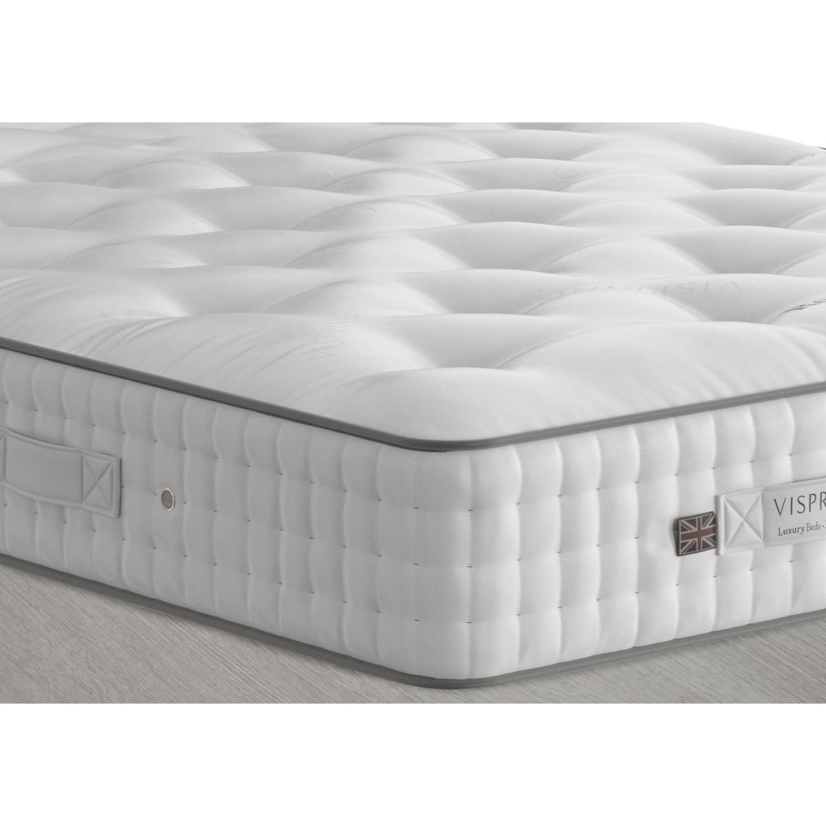 It’s the vanadium springs that make a Vispring bed profoundly comfortable. The Vispring Regal Superb mattresses pamper you with layers of luxurious fillings include fleece wool, Shetland wool, horsetail and cotton, lavishly layered around hand nested pocket springs. Choose between firm, medium and soft comfort levels. The cabinet quality sprung divans are upholstered in Belgian fabric with a choice of drawer storage. Handcrafted sprung mattress from Vispring with all-natural fillings. Fillings include fleece wool, Shetland wool, horsetail and cotton. Wonderful support from 1720 vanadium steel springs (5 foot size). Springs, each with six coils, are hand-nested in calico pockets. Mattress is covered in soft, finest-quality ticking. Hand tufted and with three rows of hand side-stitching. Wool upholstered borders have air vents and handles. Did you know?. Your mattress may have a faint odour which will dissipate after airing. The mattress should be aired for four hours after delivery. It may take time for your mattress to attain its full size once the springs have settled to the correct position. This is due to the mattress being upright during transit. Settlement of fillings and indentations caused by body weight compressing the fillings are natural and not considered defects. This can be minimised by regularly turning and rotating the mattress.