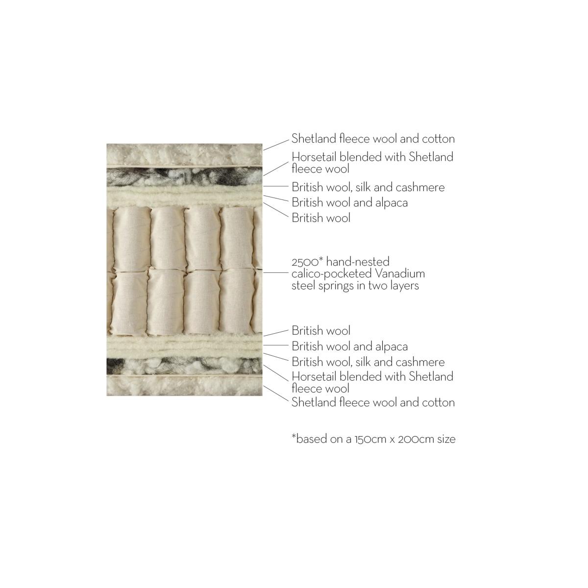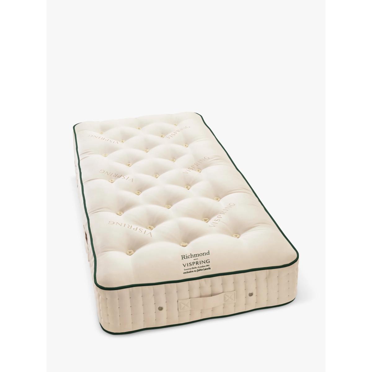 The Richmond is a traditionally handcrafted mattress using opulent materials such as silk and cashmere. In addition to the softness provided by its blend of natural fillings, it introduces a slightly firmer feel, ensuring a harmonious blend of comfort and support. If you are using your mattress on a bedstead, please ensure that the gaps between the slats of the base are no more than 7.5cm (3”) apart. This ensures that the springs in the mattress are properly supported. Vispring recommend the use of a Vispring mattress pad, this will serve as a protective layer between your mattress and the base of your bedstead. The mattress pad will prolong the life of your mattress when it is used on a slatted base, as it will prevent indentations and protect against moisture from wooden slats. A mattress pad is required to comply with the 30-year guarantee on any Vispring mattress that has been placed on a slatted base. Try before you buy This is an important purchase and it’s worthwhile to try your choice of mattress in store to make sure it's right for you. Our store Partners will be able to tell you more about its benefits, and recommend options based on your needs.