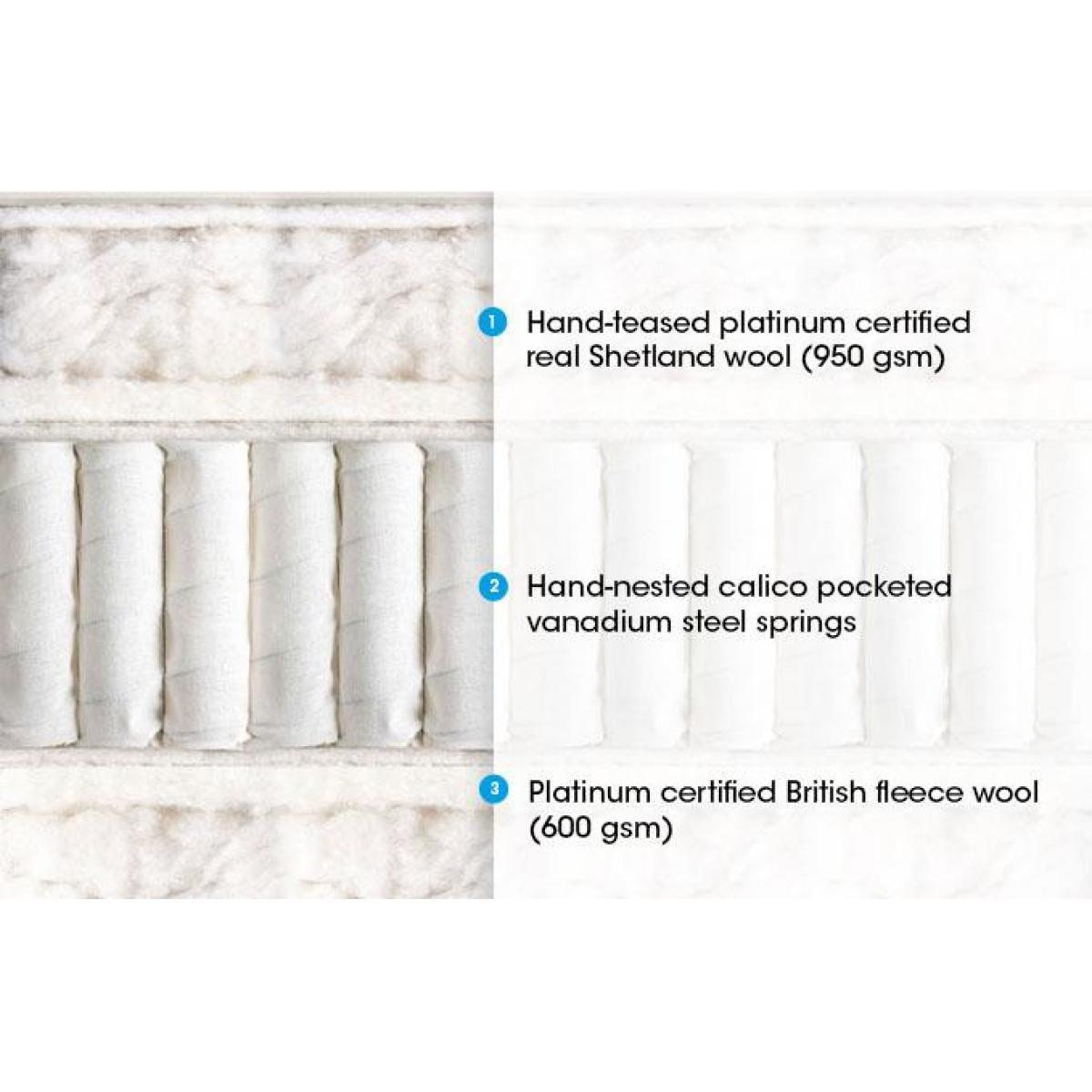 Leave the stresses of the world behind with a Vispring Shetland bed. The luxurious mattresses contain hundreds of hand nested vanadium pocket springs, enveloped by soft, all natural layers of British fleece wool and hand teased Shetland wool. Choose a firm, soft, or medium comfort level. The sprung divan bases are made to highest standards with drawer storage choices, and are upholstered in fine Belgian damask. Headboard is an optional extra. Fabulously comfortable divan bed handcrafted by Vispring. All natural mattress fillings include British fleece wool and Shetland wool. 1720 vanadium steel pocket springs give exceptional support (5 foot size). Fine ticking upholstery, hand tufted with 3 rows of hand side-stitching. Wool upholstered borders with air vents and handles. Divan base with solid timber frame and 950 hand nested springs (5 foot size). Base filled with soft, heavily needled British fleece wool. Divan is in a choice of luxury fabrics, has optional drawer storage. Did you know?. The mattress should be aired for four hours after delivery to freshen and remove any aroma from storage. It may take time for your mattress to attain its full size once the springs have settled to the correct position. This is due to the mattress being upright during transit. Settlement of fillings and indentations caused by body weight compressing the fillings are natural and not considered defects. This can be minimised by regular rotating (unless yours is a dual tension mattress).