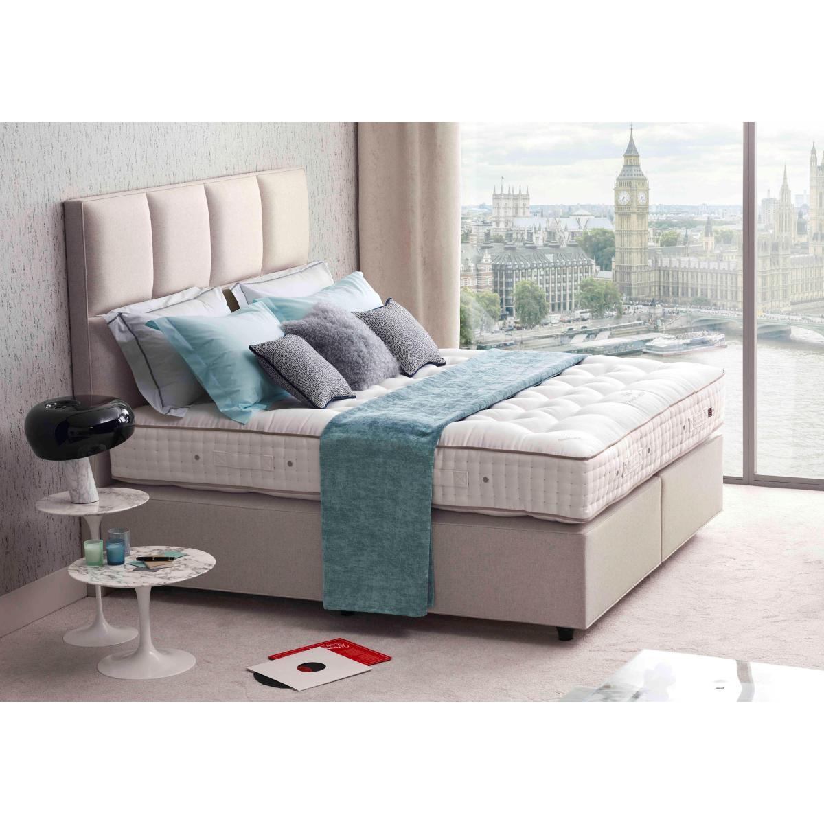 The Sublime Superb from Vispring is a luxuriously handcrafted divan bed like no other. The mattress pampers you with exclusive, all-natural fillings including horsetail, cotton, silk, mohair and Shetland wool. Within the mattress, two layers of Vispring’s famous 6 turn vanadium steel springs offer responsive support. The mattress rests on a solid timber sprung base in a wide choice of fine upholstery. Headboard is an optional extra. Handcrafted divan bed with a luxuriously filled Vispring mattress. All natural fillings include horsetail, cotton, silk, mohair and Shetland wool. With 2520 vanadium steel pocket springs in 2 layers (5 foot size). Soft ticking upholstery, hand tufted, 4 rows of hand side-stitching. Wool and coir upholstered borders with air vents and handles. Divan base with solid timber frame and 1344 hand-nested springs. Base fillings are coir, British fleece wool and cotton. The divan is upholstered in your choice of luxury fabrics. Did you know?. The mattress should be aired for four hours after delivery to freshen and remove any aroma from storage. It may take time for your mattress to attain its full size once the springs have settled to the correct position. This is due to the mattress being upright during transit. Settlement of fillings and indentations caused by body weight compressing the fillings are natural and not considered defects. This can be minimised by regular rotating (unless yours is a dual tension mattress). Product images are representative. Find out more.