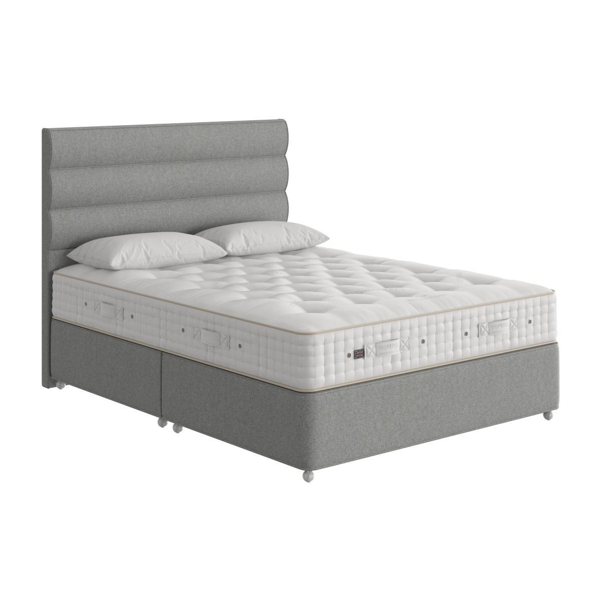 The Sublime Superb from Vispring is a luxuriously handcrafted divan bed like no other. The mattress pampers you with exclusive, all-natural fillings including horsetail, cotton, silk, mohair and Shetland wool. Within the mattress, two layers of Vispring’s famous 6 turn vanadium steel springs offer responsive support. The mattress rests on a solid timber sprung base in a wide choice of fine upholstery. Headboard is an optional extra. Handcrafted divan bed with a luxuriously filled Vispring mattress. All natural fillings include horsetail, cotton, silk, mohair and Shetland wool. With 2520 vanadium steel pocket springs in 2 layers (5 foot size). Soft ticking upholstery, hand tufted, 4 rows of hand side-stitching. Wool and coir upholstered borders with air vents and handles. Divan base with solid timber frame and 1344 hand-nested springs. Base fillings are coir, British fleece wool and cotton. The divan is upholstered in your choice of luxury fabrics. Did you know?. The mattress should be aired for four hours after delivery to freshen and remove any aroma from storage. It may take time for your mattress to attain its full size once the springs have settled to the correct position. This is due to the mattress being upright during transit. Settlement of fillings and indentations caused by body weight compressing the fillings are natural and not considered defects. This can be minimised by regular rotating (unless yours is a dual tension mattress). Product images are representative. Find out more.