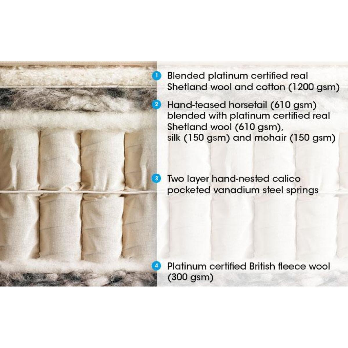 The Sublime Superb from Vispring is a luxuriously handcrafted divan bed like no other. The mattress pampers you with exclusive, all-natural fillings including horsetail, cotton, silk, mohair and Shetland wool. Within the mattress, two layers of Vispring’s famous 6 turn vanadium steel springs offer responsive support. The mattress rests on a solid timber sprung base in a wide choice of fine upholstery. Headboard is an optional extra. Handcrafted divan bed with a luxuriously filled Vispring mattress. All natural fillings include horsetail, cotton, silk, mohair and Shetland wool. With 2520 vanadium steel pocket springs in 2 layers (5 foot size). Soft ticking upholstery, hand tufted, 4 rows of hand side-stitching. Wool and coir upholstered borders with air vents and handles. Divan base with solid timber frame and 1344 hand-nested springs. Base fillings are coir, British fleece wool and cotton. The divan is upholstered in your choice of luxury fabrics. Did you know?. The mattress should be aired for four hours after delivery to freshen and remove any aroma from storage. It may take time for your mattress to attain its full size once the springs have settled to the correct position. This is due to the mattress being upright during transit. Settlement of fillings and indentations caused by body weight compressing the fillings are natural and not considered defects. This can be minimised by regular rotating (unless yours is a dual tension mattress). Product images are representative. Find out more.