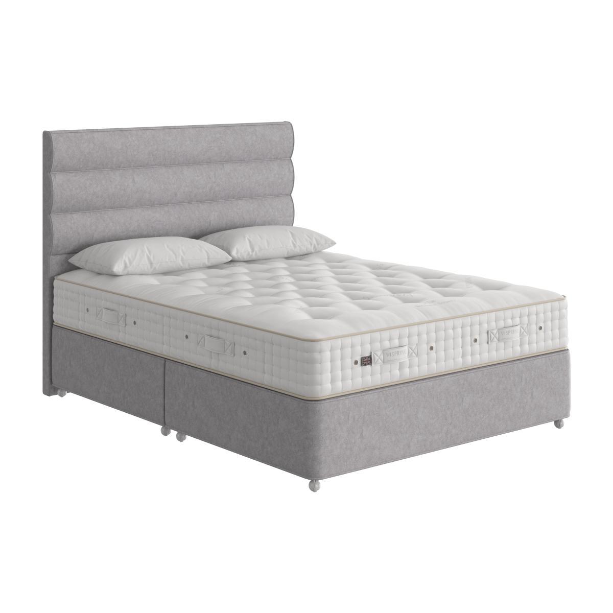 The Sublime Superb from Vispring is a luxuriously handcrafted divan bed like no other. The mattress pampers you with exclusive, all-natural fillings including horsetail, cotton, silk, mohair and Shetland wool. Within the mattress, two layers of Vispring’s famous 6 turn vanadium steel springs offer responsive support. The mattress rests on a solid timber sprung base in a wide choice of fine upholstery. Headboard is an optional extra. Handcrafted divan bed with a luxuriously filled Vispring mattress. All natural fillings include horsetail, cotton, silk, mohair and Shetland wool. With 2520 vanadium steel pocket springs in 2 layers (5 foot size). Soft ticking upholstery, hand tufted, 4 rows of hand side-stitching. Wool and coir upholstered borders with air vents and handles. Divan base with solid timber frame and 1344 hand-nested springs. Base fillings are coir, British fleece wool and cotton. The divan is upholstered in your choice of luxury fabrics. Did you know?. The mattress should be aired for four hours after delivery to freshen and remove any aroma from storage. It may take time for your mattress to attain its full size once the springs have settled to the correct position. This is due to the mattress being upright during transit. Settlement of fillings and indentations caused by body weight compressing the fillings are natural and not considered defects. This can be minimised by regular rotating (unless yours is a dual tension mattress). Product images are representative. Find out more.