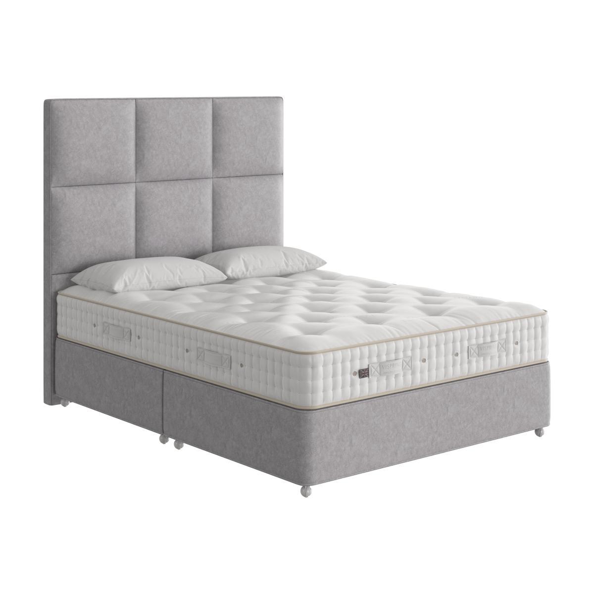 The Tiara Superb from Vispring is a divan bed that takes comfort to a whole new level. The mattress is luxuriously soft yet supportive, with fillings of horsetail, cotton and Shetland wool. Within the mattress, two layers of Vispring’s famous 6 turn vanadium steel springs offer responsive support. The mattress rests on a solid timber sprung base in your choice of fine upholstery. Headboard is an optional extra. The ultimate in luxury. There’s no other way to describe the Vispring Tiara Superb divan set. This handcrafted bed features a wonderfully responsive 23 cm mattress with a traditional, softly supportive feel. It’s superbly comfortable thanks to the combination of fillings, which include horsetail, cotton and Shetland wool, and the superior pocket spring construction. There are 2242 six-coil vanadium steel pocket springs in king size, hand-nested in calico and arranged in two layers for precise support. Covered in high-quality ticking, this mattress has hand-tied woollen tufts and three rows of hand side stitching. Upholstered borders have air vents and horizontal handles. The timber base has 1344 springs in king size, hand-nested in calico. It’s filled with coir and blended British fleece and cotton. Shown here in. Touch Rose- (2116. ) The Vispring Tiara Superb divan set is part of the British-made Vispring Tiara Superb collection. Product images are representative. Find out more. Please note. The mattress should be aired for four hours after delivery to freshen and remove any aroma from storage. It may take time for your mattress to attain its full size once the springs have settled to the correct position. This is due to the mattress being upright during transit. Settlement of fillings and indentations caused by body weight compressing the fillings are natural and not considered defects. This can be minimised by regular rotating (unless yours is a dual tension mattress).