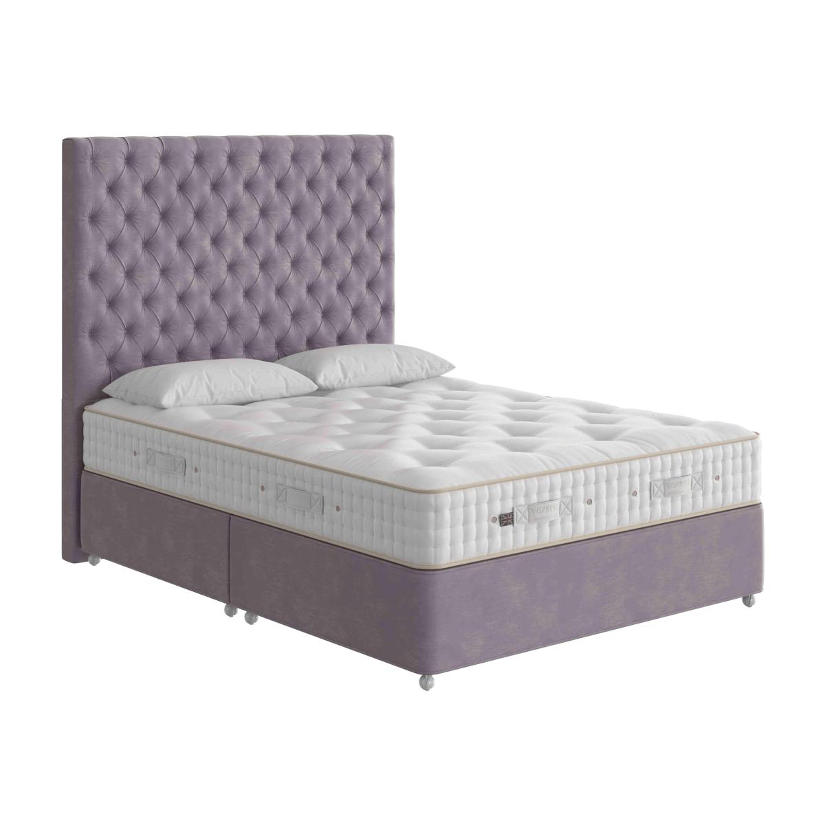 Sleeping is believing. The Tiara Superb from Vispring is luxuriously comfortable and supportive, with mattress fillings of horsetail, cotton and Shetland wool, and two layers of Vispring’s famous 6 turn vanadium steel springs. Choose your perfect comfort level, then look forward to a better night’s sleep, for years to come. The sprung, upholstered base comes in a wide choice of sizes, colours and fabrics, so you can create your dream bespoke bed. Headboard shown available separately. The ultimate in handcrafted luxury. The Vispring Tiara Superb divan bed combines two layers of Vispring’s famous vanadium springs with all natural fillings including Shetland wool. Why you’ll love it This bed is as luxuriously comfortable as it is stylish. In a choice of comfort levels. Fillings include hand-teased horsetail, cotton and Shetland wool. Two layers of Vispring’s famous six-turn vanadium springs. Fine ticking upholstery. Hand-tufted with 3 rows of hand side stitching. Protective wool and coir upholstered borders with air vents and handles. Drawer storage options are available. Divan base is upholstered in a choice of fine fabrics. What you need to know Mattress type: Pocket spring. Mattress depth: 23cm + 6cm doming. Mattress firmness:Soft, Medium, Firm, Extra Firm. Split tension available in King and Super King size. Mattress springs: 2242 vanadium steel, 6 turn pocket springs in king size. Mattress fillings: cotton and hand-teased horsetail, each blended with Shetland wool. Mattress cover: finest quality ticking. Sizes: Super king, king, double, small double, single. Requires turning: Yes. Turn with the seasons for optimum performance. Base construction: Traditional sprung platform base. Solid timber frame, FSC certified. Base springs: 1344 hand nested pocket springs in king size. Base fillings: Coir, British fleece wool and cotton. Mattress care:Air for 4 hours before using to remove any odour. Allow at least 4 hours for springs to settle and for mattress to attain its full size. Indentations caused by settlement of fillings or body weight are normal and are not considered defects. Rotate regularly, turn seasonally.