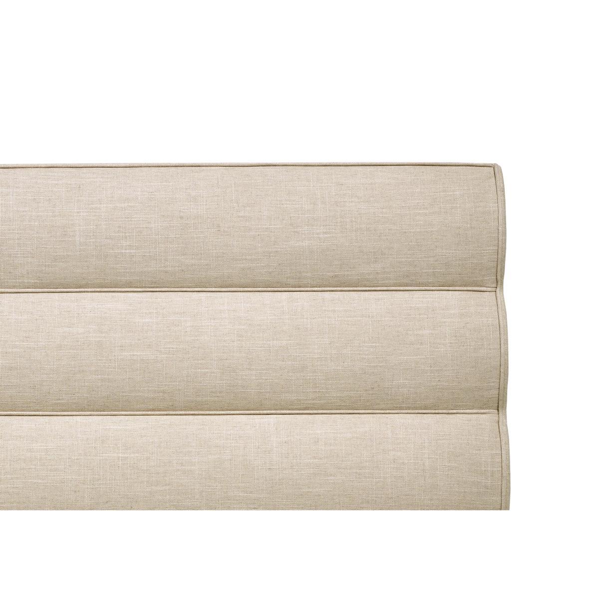 With its simple, horizontally fluted design, the Vispring Triton headboard suits the contemporary bedroom. It’s beautifully handcrafted by Vispring, to complement their collection of luxury beds, but will fit any standard sized divan. This attractive headboard is luxuriously cushioned and softly upholstered in a wide choice of gorgeous fabrics and colours. Contemporary, handcrafted headboard from Vispring. Simple fluting creates three horizontal cushioned panels. Upholstered in a choice of fabrics and on trend colours. 100% wool, faux suedes, velvet mixes, satins, canvas and linen weaves. Attaches with ease to any Vispring divan. Only available as a Euro style headboard, extending to the base of the divan. Colour displayed is. Gem Shell 2024.