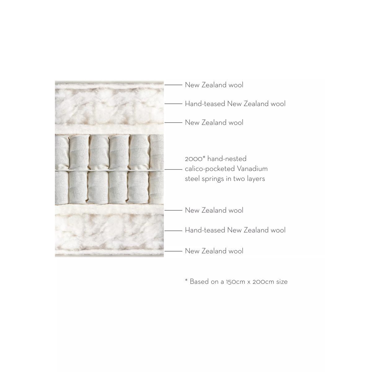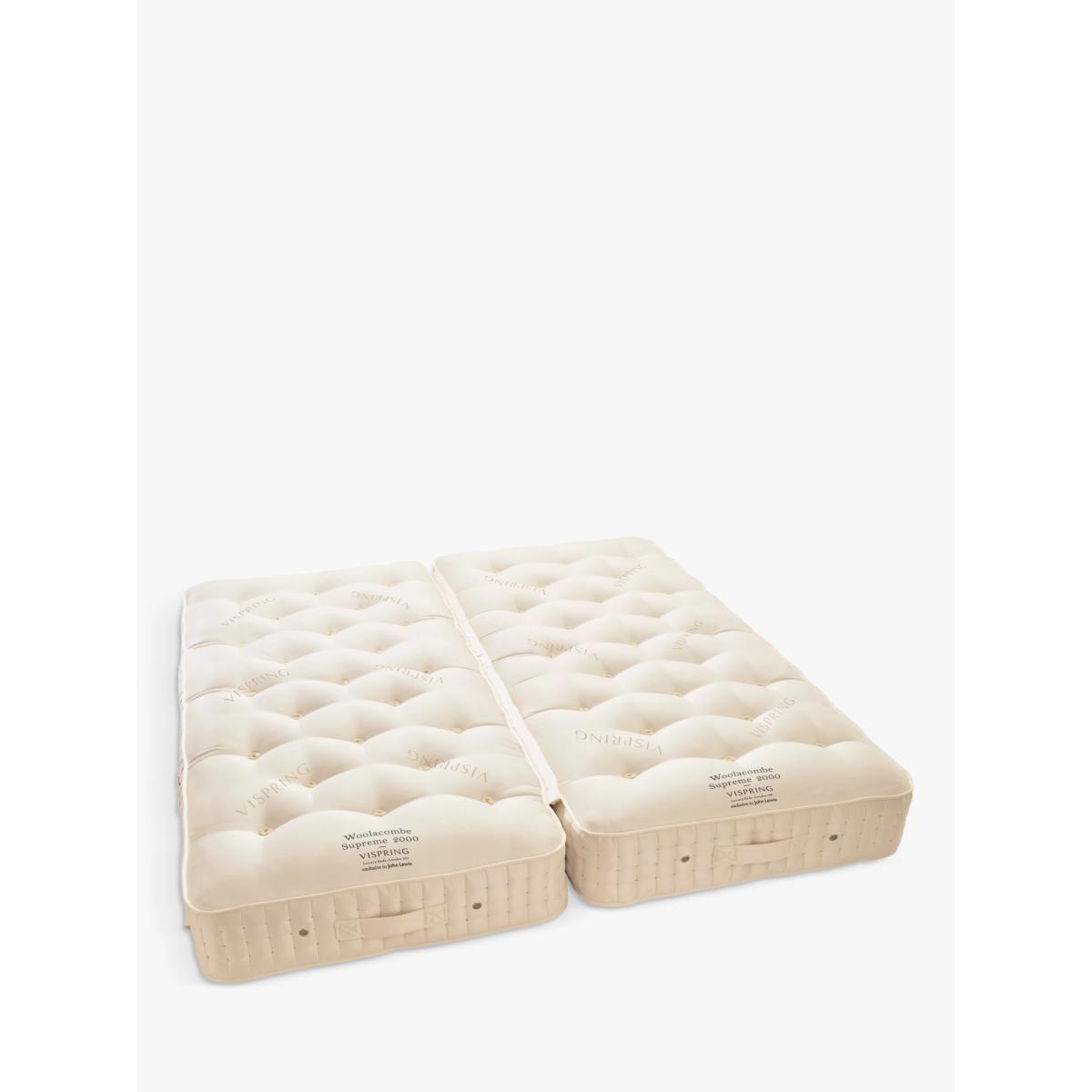 The Woolacombe Supreme 2000 range of mattreses from Vispring are upolstered exclusively in layers of sumptuous wool and feature a pocketed Vanadium steel spring system. Handmade in Plymouth with a total of 2000 pocket springs in the king size model, this range offers indulgent and supple support each night and a medium tension level of comfort. This zip link model can be used as one large mattress or as two independent mattresses depending on your needs. Natural Materials Designed with durable wool layers and hand-teased New Zealand wool that's naturally insulating and fire retardant, this mattress delivers a luxuriously comfortable feel. Natural materials absorb humidity throughout the night so that you feel cool and comfortable, while ensuring that your sleep environment stays hygienic. Vanadium Steel Pocket Springs This support system is designed with hand-nested springs in a honeycomb formation, to offer tailored, responsive and effective support for your entire body. Enveloped by the natural fillings, pocket springs also help to maintain the structure of your mattress. Three rows of hand side-stitching and cotton felt tufts lend a premium finish. Try before you buy This is an important purchase and it's worthwhile to try your choice of mattress in store to make sure it's right for you. Our store Partners will be able to tell you more about its benefits, and recommend options based on your needs.