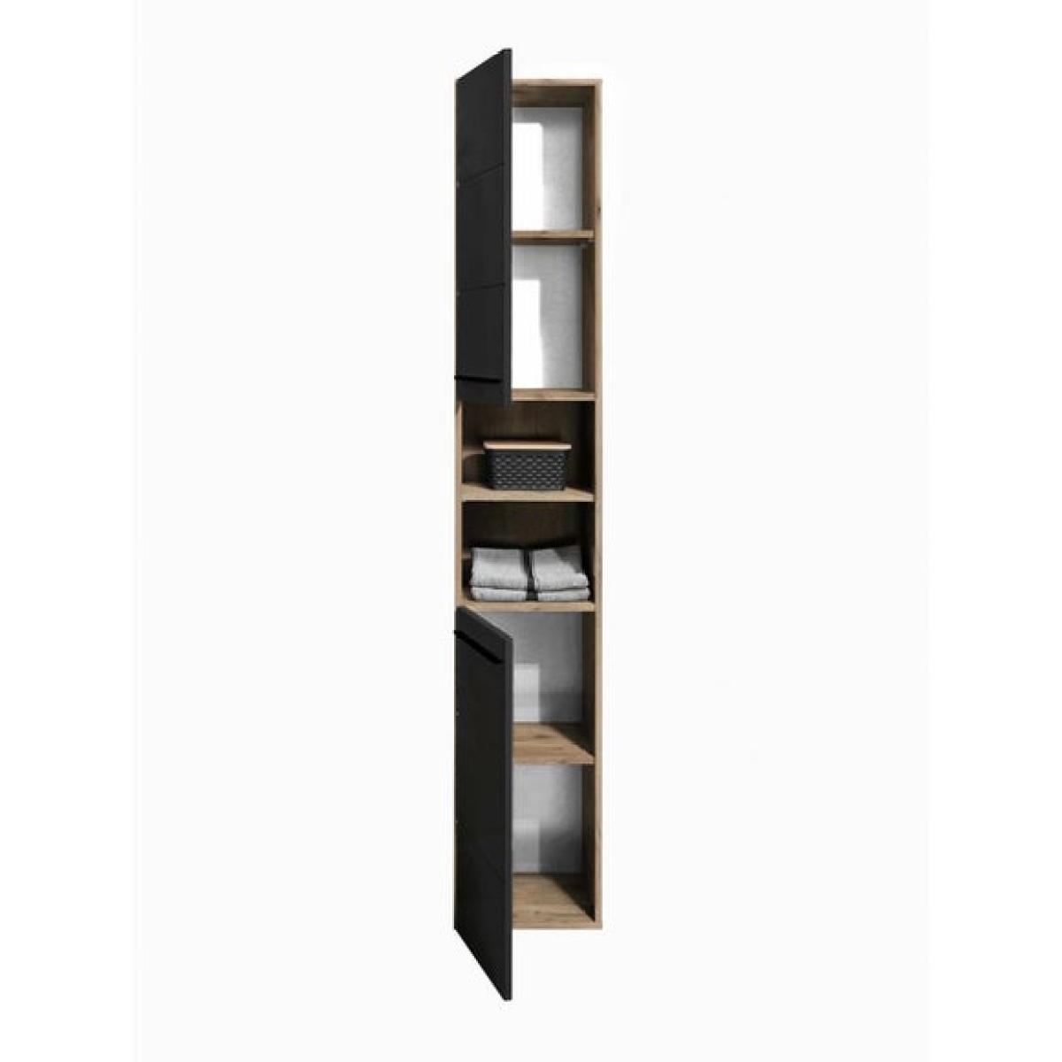 * Oak frame cabinet * Matte black door * Spacious shelving Tall and elegant, this cabinet is designed to bring both order and style to your bathroom. The combination of viking oak and matte black panels creates a striking contrast, while the horizontal notches lend a contemporary edge. With two cupboards, four shelves, and two open cubbies, there’s a place for everything, whether you’re storing daily essentials or adding a decorative flourish.