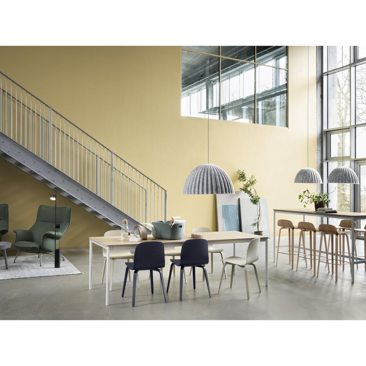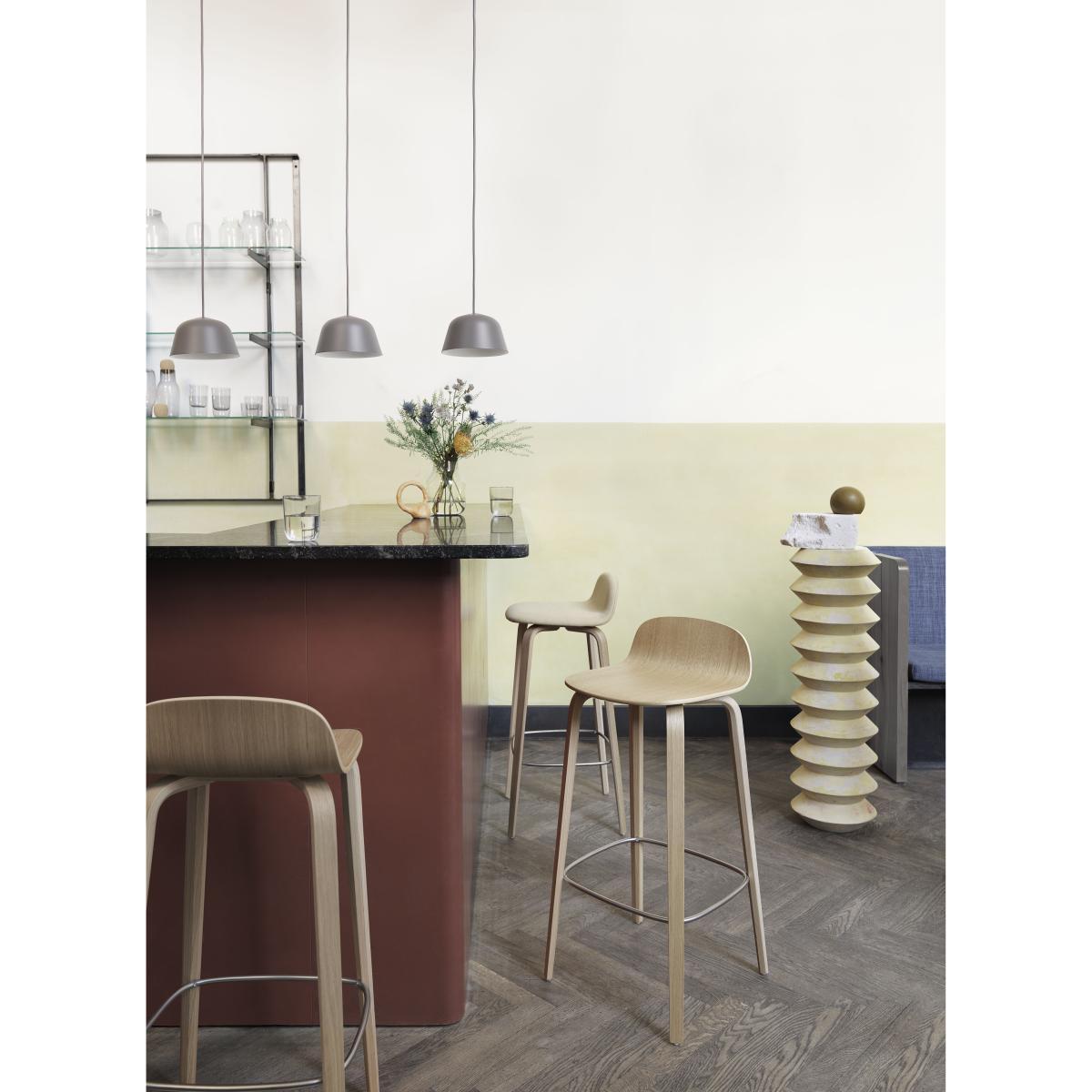 "Created by Finnish designer Mika Tolvanen, the Visu collection is a modern take on the famous bent plywood chair, a great classic of contemporary design. It took no less than two years of work to achieve this fluid form and user-friendly design, during which its designer and manufacturer continuously reworked its edges and curves: “Visu” is Finnish for “precision’’! Functional and ergonomic, this bar stool is discreet and timeless without being boring. It fits perfectly into all environments, private and public alike. The shell with its rounded edges is large and comfortable. The low backrest and steel footrest ensure good ergonomics. The soft, curved lines of the seat harmonise perfectly with the rakish, slender base. Designer Mika Tolvanen: "The idea behind Visu was to create an elegant, simple interpretation of the archetypal plywood chair. I wanted the design to have a sober, timeless character, capable of bringing a feeling of modern familiarity to any room, combined with a comfortable seat in moulded plywood. Designing this family of seats, all aesthetically linked but which can be used for different functions, required research work on adapting a design to its environment and a process which lasted almost two years. The Visu Chair is a new perspective on the traditional wooden chair, echoing the idea of Scandinavian design combined with modern expression. ‘’".