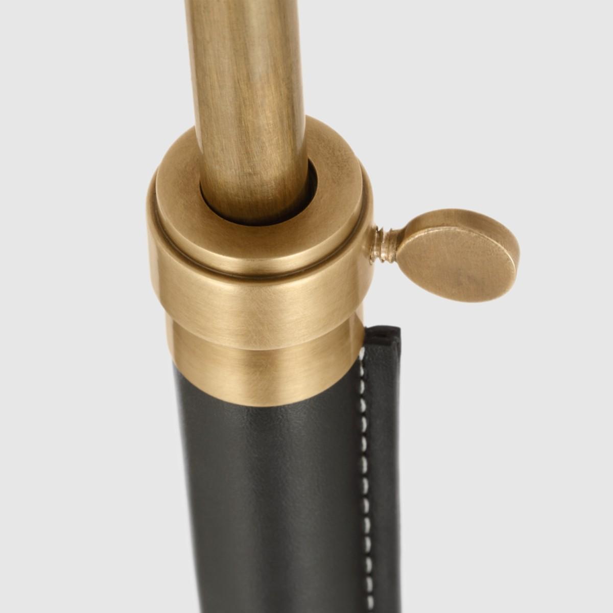I love this floor lamp for its sophisticated blend of antique brass and rich chocolate leather, which lends a warm, inviting feel to any space. It works particularly well in modern minimal interiors or those with mid-century influences, adding a touch of elegance without overpowering other design elements. For styling, consider placing it beside a neutral sofa or armchair to create a cosy reading nook, or use it to anchor a corner in a living room. Practical tips include pairing it with a textured or patterned shade to add visual interest and keeping the surrounding accessories simple to let the lamp remain the focal point. Its sleek, understated silhouette makes it versatile and timeless, perfect for elevating both contemporary and classic interiors.
