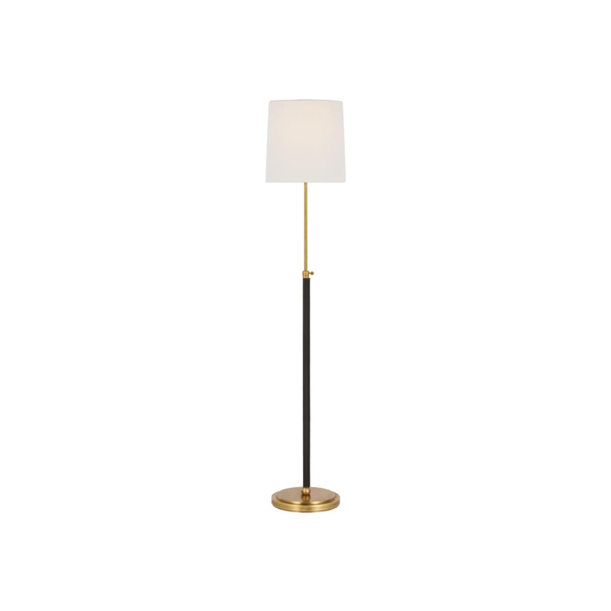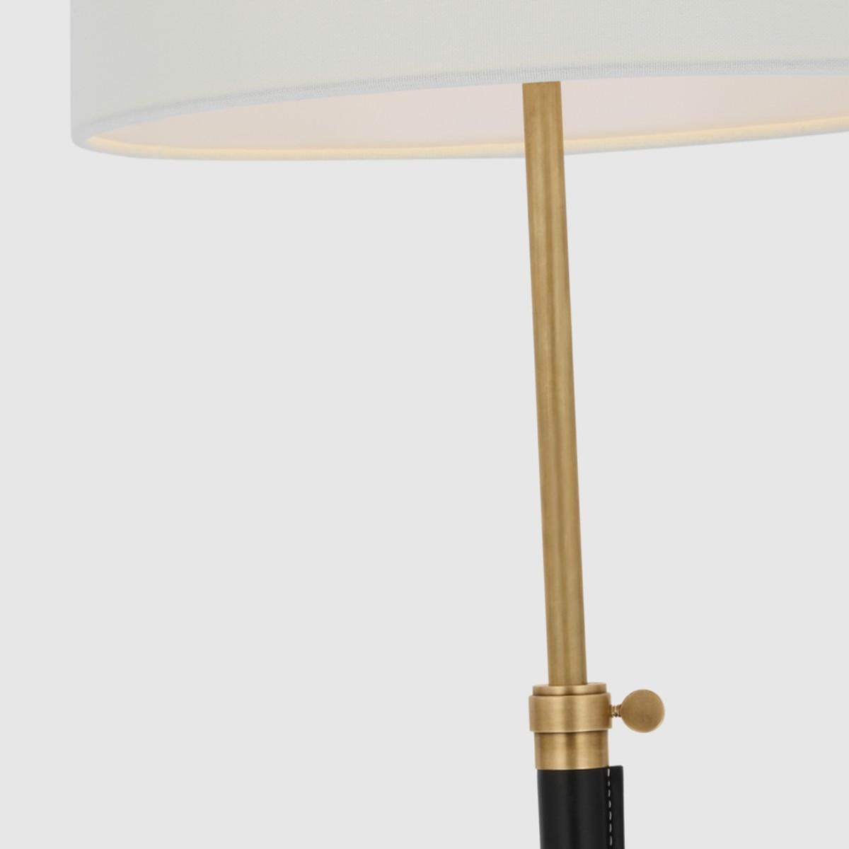 Bryant Wrapped Floor Lamp in Hand-Rubbed Antique Brass and Chocolate Leather with Linen Shade.