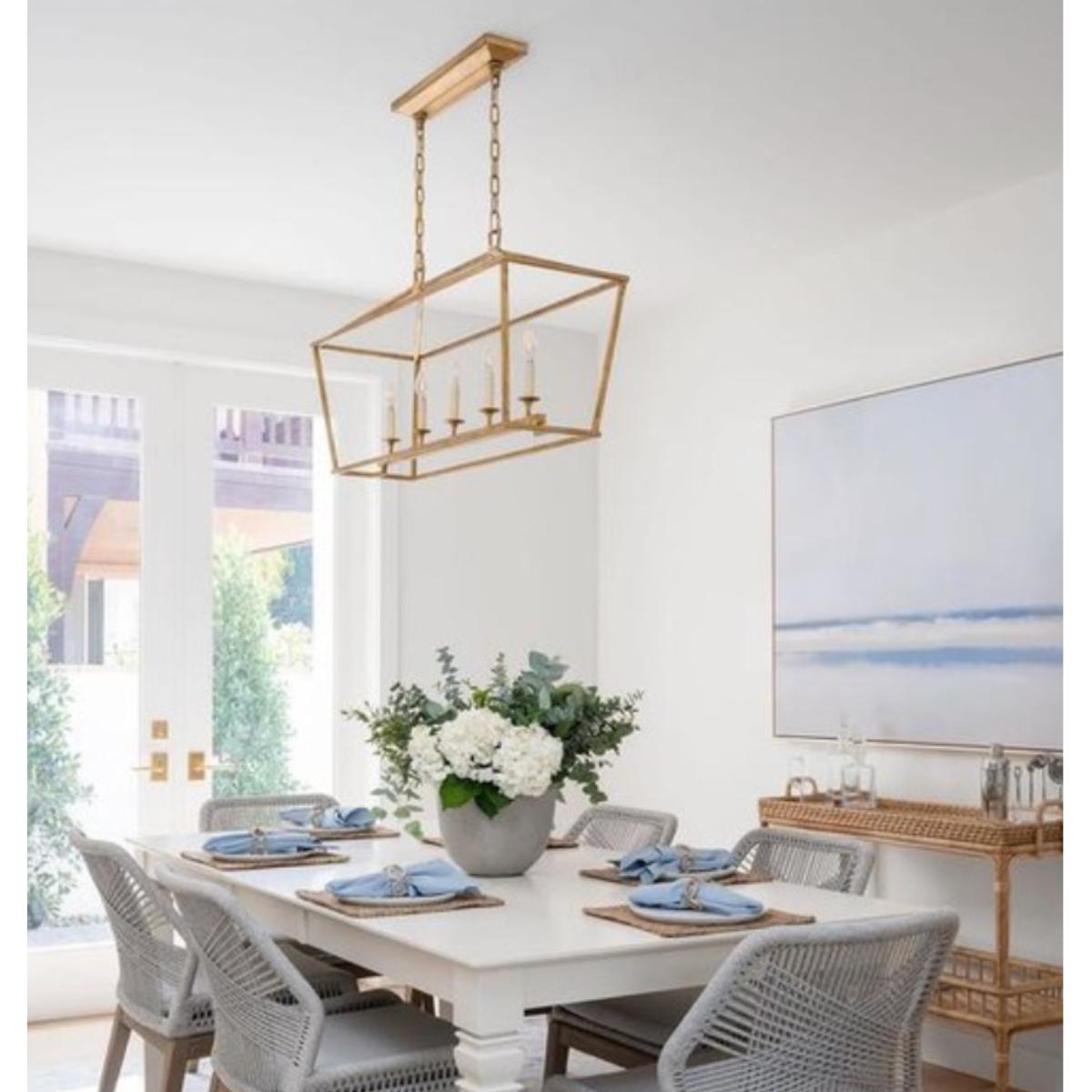 I love this linear lantern for its modern take on classic design, with the gilded iron finish adding a warm, sophisticated touch. It works particularly well in contemporary or transitional interiors, especially over dining tables or kitchen islands, where it can create a striking focal point. For styling tips, consider pairing it with understated, neutral tones to let the gold finish stand out or complementing it with other metallic accents for a cohesive look. Make sure to install it at a height that allows enough clearance while still making a visual impact, and it pairs beautifully with minimalist and industrial spaces alike.