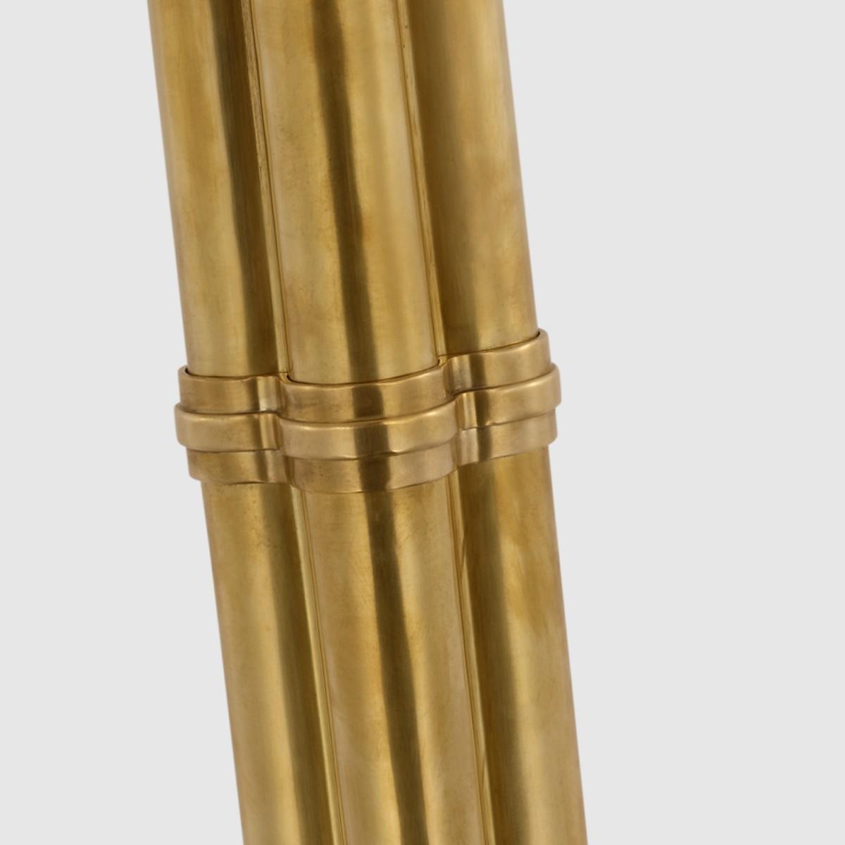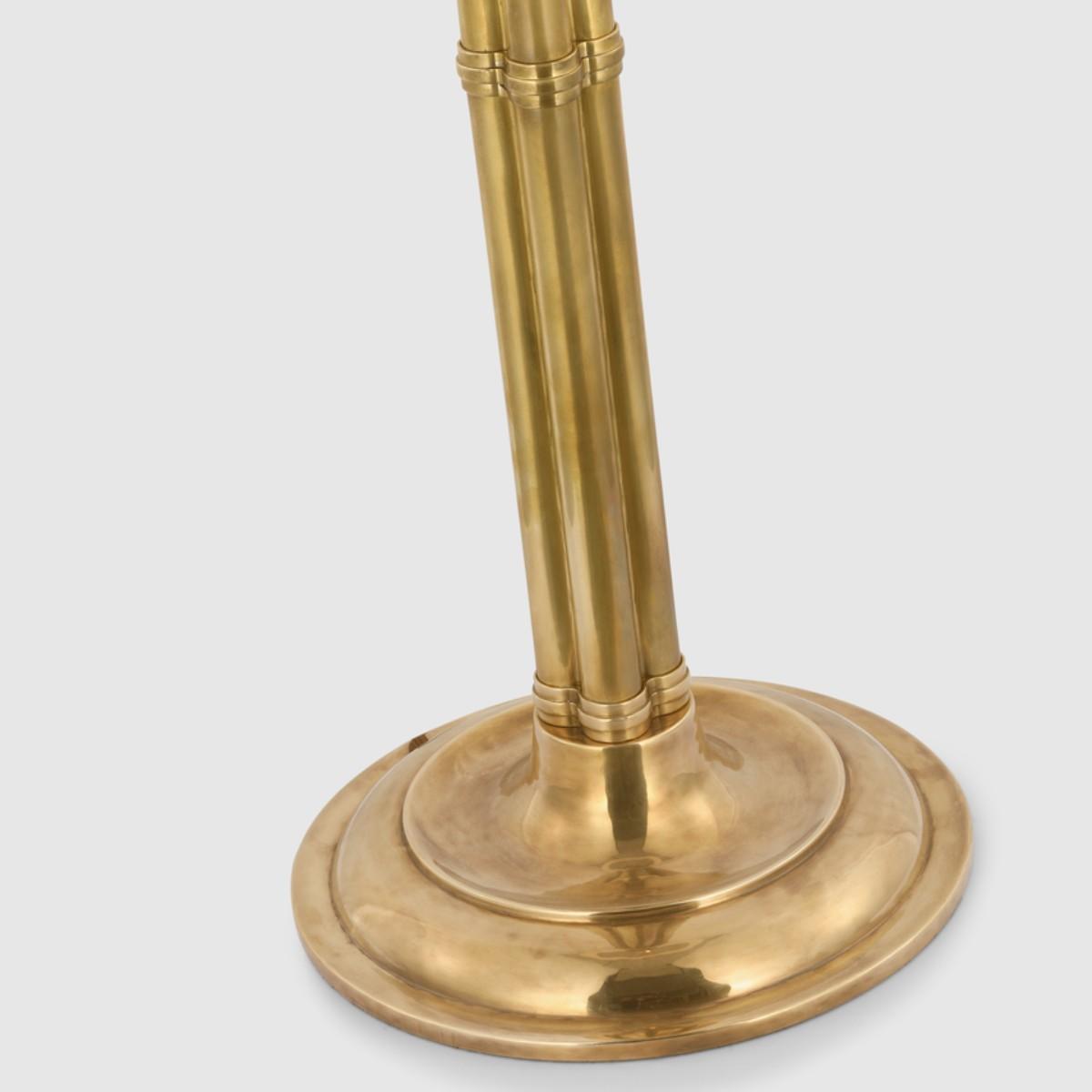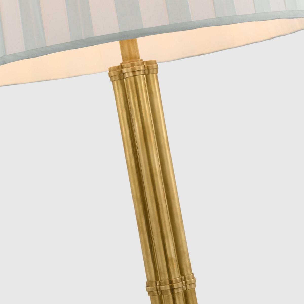 Downing Large Floor Lamp in Natural Brass with Silk Box Pleat Shade.
