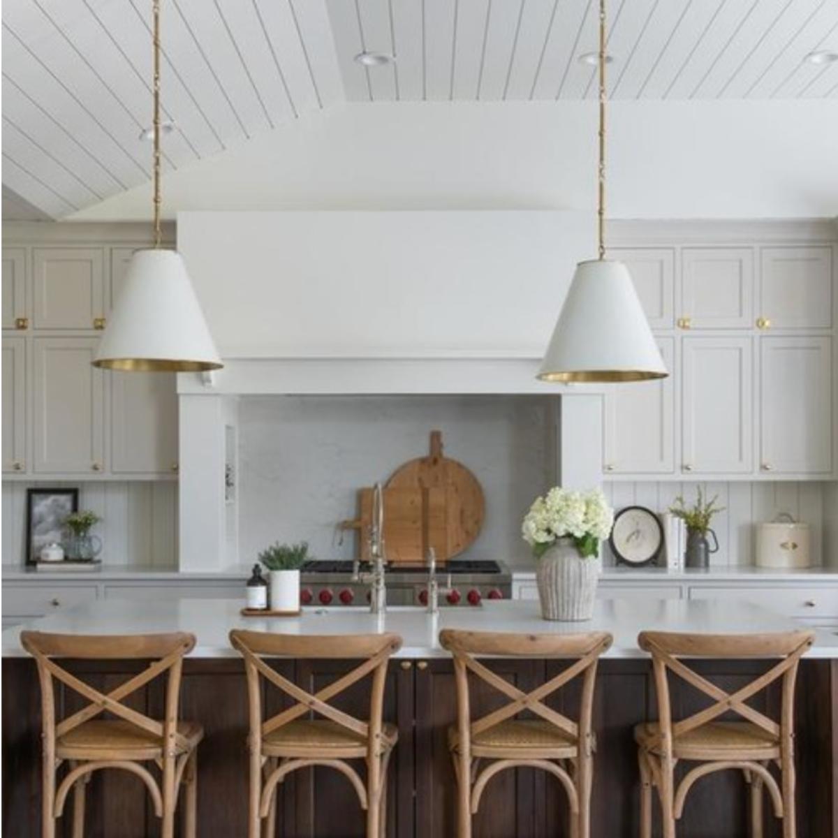 I love this light for its versatile vintage appeal and the way it combines antique brass with an elegant off-white shade, making it a great fit for both classic and contemporary interiors. It works particularly well in kitchens, dining rooms, or cosy living spaces where you want a touch of understated elegance. Practical styling tips include hanging it over a breakfast island or dining table to create focal points, or grouping multiples in a stairwell for a cohesive look. Its neutral tones allow it to blend seamlessly with colour schemes ranging from warm neutrals to cool greys, adding warmth and sophistication without overpowering the space.