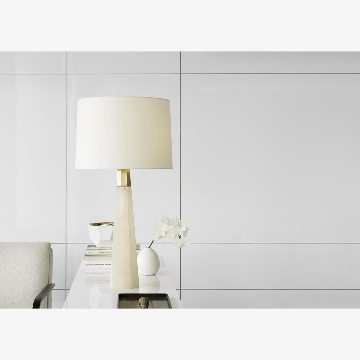 I love this bedside lamp for its elegant simplicity and versatile style. The alabaster base paired with the hand-rubbed antique brass detail creates a warm, inviting glow that suits both contemporary and traditional interiors. It works particularly well in minimalist or Scandinavian schemes where clean lines and natural materials are key. For practical styling, consider placing it on a bedside table with neutral bedding or soft textures to enhance its soft lighting effect. It also makes an excellent choice for living rooms or desks, adding a touch of understated sophistication without overpowering the space.