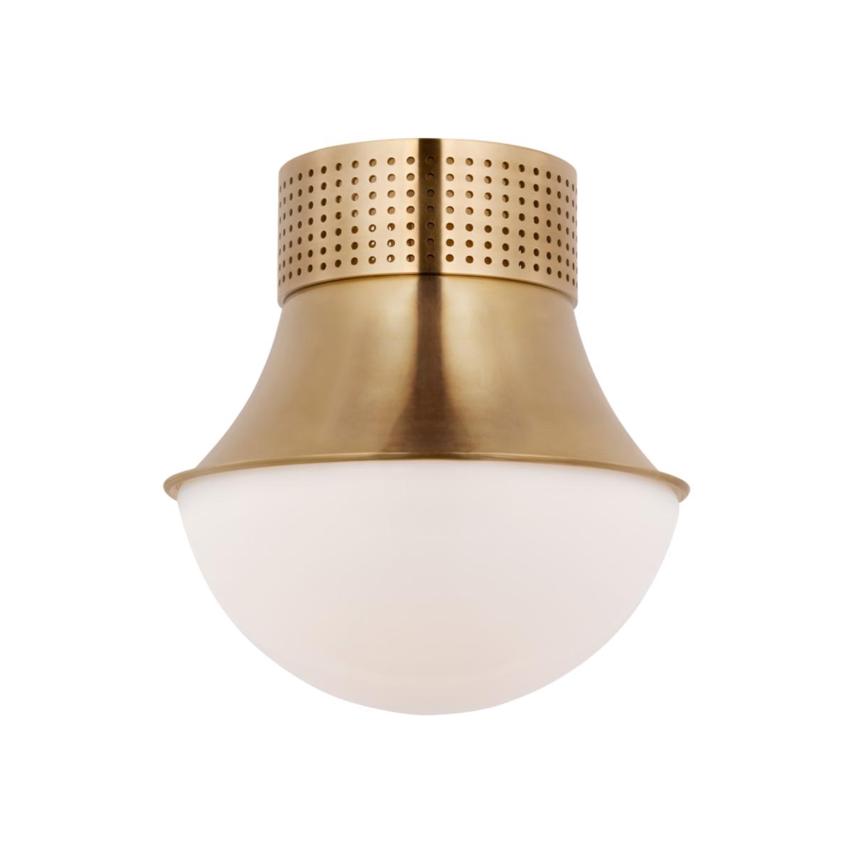 Precision 9" Flush Mount in Antique Burnished Brass with White Glass.
