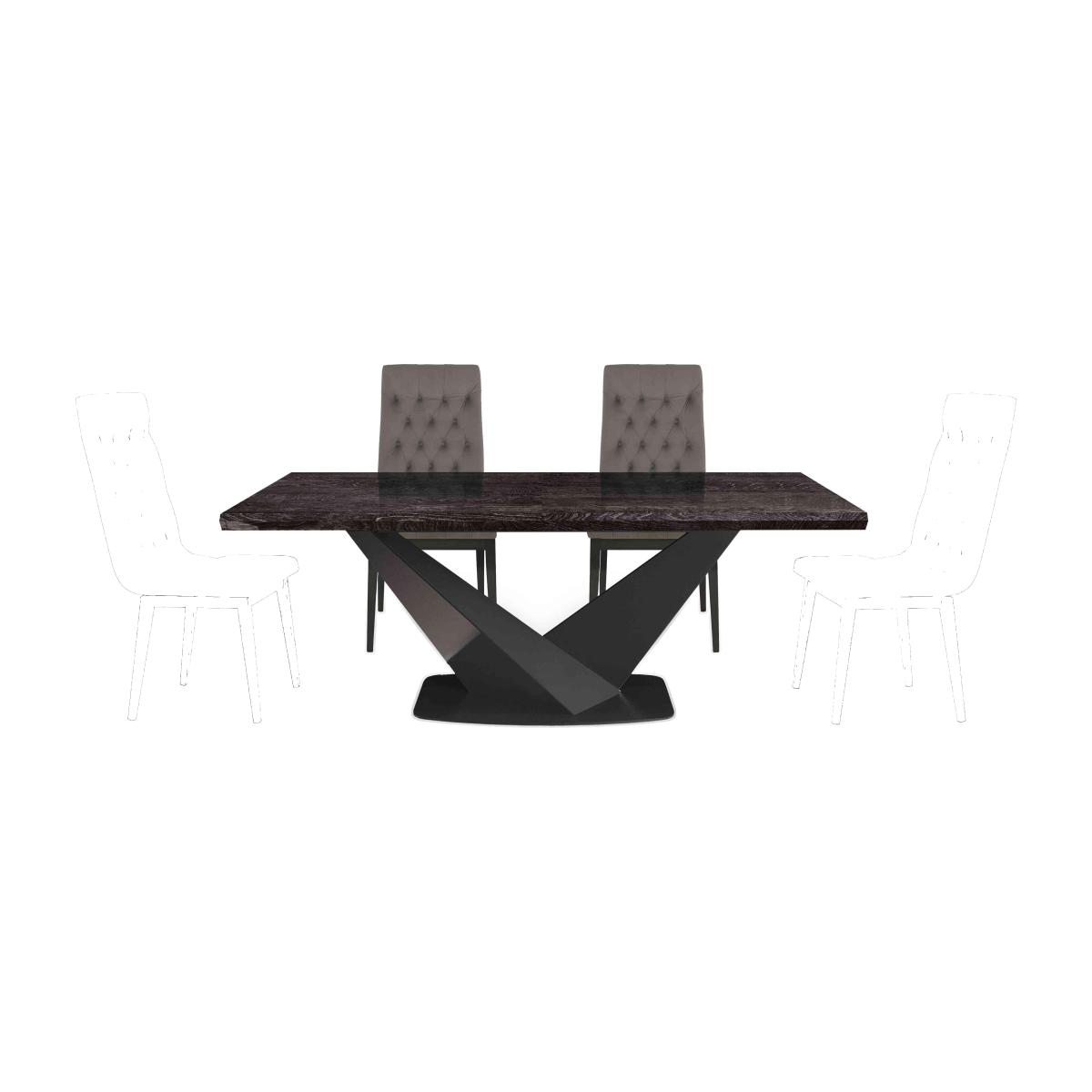 Gorgeous and glam, our Vita range of dining room and living room furniture is designed to impress. At the heart of the collection is a showstopping extending dining table, a study in contrasts with a high-gloss, bevelled-edge woodgrain-finished top and architectural, matt metal pedestal base. Offered in two sizes, it comes complete with two extension leaves and can accommodate a third to seat up to 16 in the most elegant of styles. Pair with the range’s three styles of dining chair or choose a ready-made dining set. The collection also includes curio cabinets, occasional tables, sideboards and media cabinets. Made in Italy exclusively for Furniture Village. This gorgeous dining table and chairs set strikes the perfect balance between showstopping style – just look at that glossy woodgrain finish – and luxurious comfort. Why you'll love it Sleek, elegant and absolutely stunning Italian style. The table’s gorgeous high-gloss woodgrain finish is 4 layers deep. With bevelled edges and an architectural V-shaped pedestal base. Base is made of stainless steel with a contemporary matt finish. Includes 2 extension leaves that store neatly under the table top. Simple pull on the table ends and the extra leaves slot into place. Big family gathering? This dining table can accommodate up to 3 extension leaves. In 2 sizes – when extended the largest can seat 14. With 4 dining chairs upholstered in a choice of fabrics. Curved and cushioned seats with lavish buttoning. Solid beech wood frames with a gorgeous high-gloss finish. Made in Italy for Furniture Village. This beautiful dining set is part of our Vita range. What you need to know Dining chairs have foam cushioning and solid beech wood frames. The 160 cm table seats 8 when closed. With the 2 supplied extension leaves, it can be extended to 260 cm to seat 12. The 200 cm table seats 10 when closed. With the 2 supplied extension leaves, it can be extended to 300 cm to seat 14. Dining tables can accommodate a total of 3 extension leaves. An additional extension leaf, to seat 2 more, is available separately. The beautiful high-gloss finish may show small marks under certain lighting as a result of the polishing process. This is normal. Please use place mats and coasters at all times. Shop our Vita range for an extensive choice of showstopping glam Italian furniture.