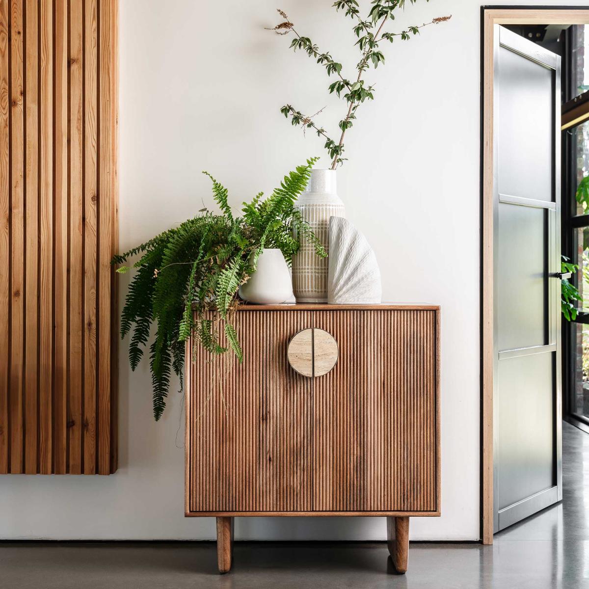 The Vito Highboard gives off an organic vibe which would pair perfectly in a modern home with a neutral palette, not forgetting additional leafy greens. Upon opening the stylish mango wood doors with an exceptional fluted design, you will discover plenty of storage space inside the Vito Highboard, including a spot for your favourite wines and a handy drawer for trinkets.