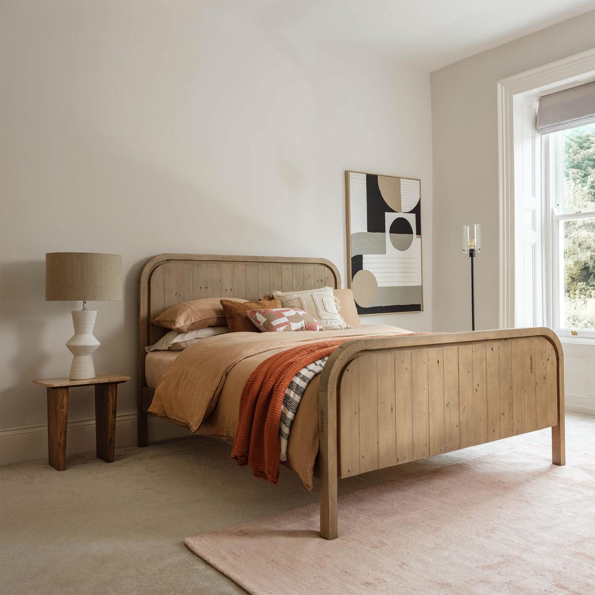 I love this side table for its clean, minimalist design and warm wood tone, which makes it highly versatile. It works well in both contemporary and rustic interiors, adding a touch of natural texture without overpowering the space. Practical styling tips include pairing it with soft textiles or a modern desk lamp for added functionality, and layering it with decorative objects such as small plants or books to create an inviting vignette. Its sturdy build also makes it ideal for use next to sofas or beds, offering a stylish yet practical spot for essentials or lighting.