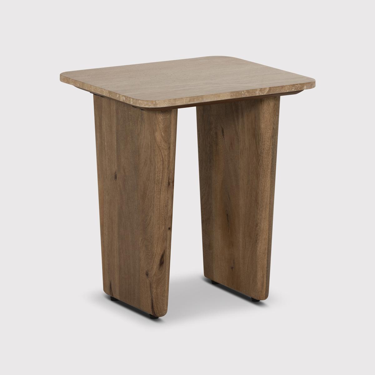 The Vito Lamp Table will fit into the gap by your sofa or in the corner of your living room, looking stylish and awaiting a lamp to give off a peaceful glow allowing you to relax and unwind. With mango wood legs for a natural look, and a stunning travertine top, the Vito Lamp Table is made from quality materials ensuring longevity. Pair with the Vito Coffee Table and Vito Tv Unit for a cohesive look.