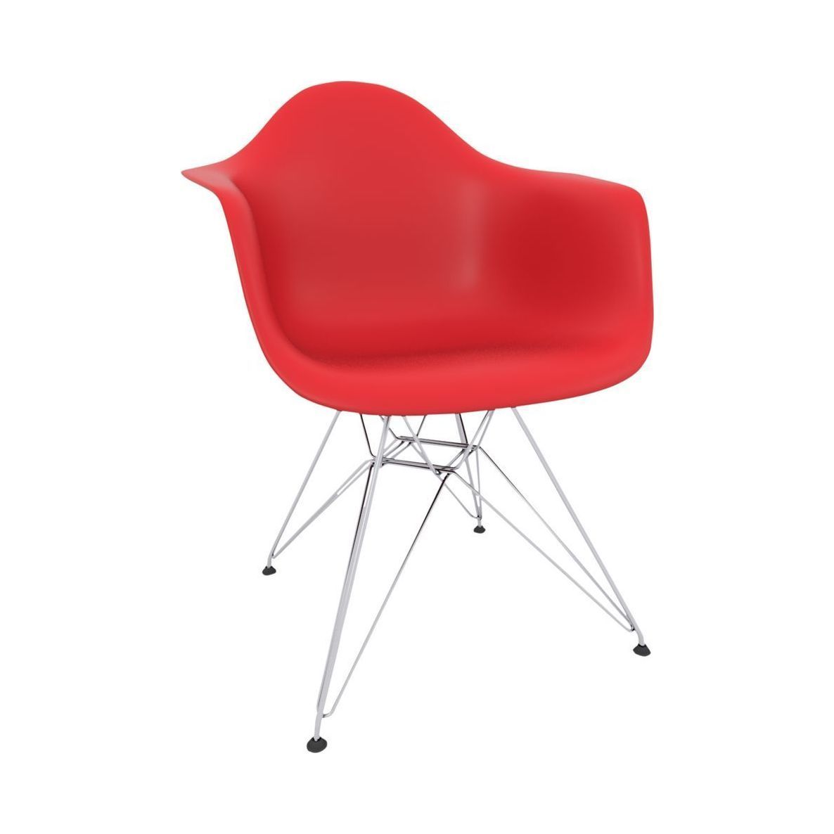 The iconic Eames DAR armchair has a moulded polypropylene shell in a variety of colours on top of a striking 'Eiffel Tower' style leg base in chromed steel. Every colour in this selection is carefully chosen to complement the others, so you can mix and match a variety of shades to suit your décor. With their new seat height, the Eames DAR armchairs are even better suited for use in combination with contemporary dining tables and interiors. The polypropylene shell is dyed through, so the colour will never fade. Husband and wife team Charles and Ray Eames revolutionised 20th Century furniture design. They combined their respective disciplines in architecture and modern art with low-cost yet durable materials to create perfectly balanced, functional furniture. The Eames’ works have proved to be real ‘designs for life’: they’re iconic art pieces and objects of desire, yet utterly practical.