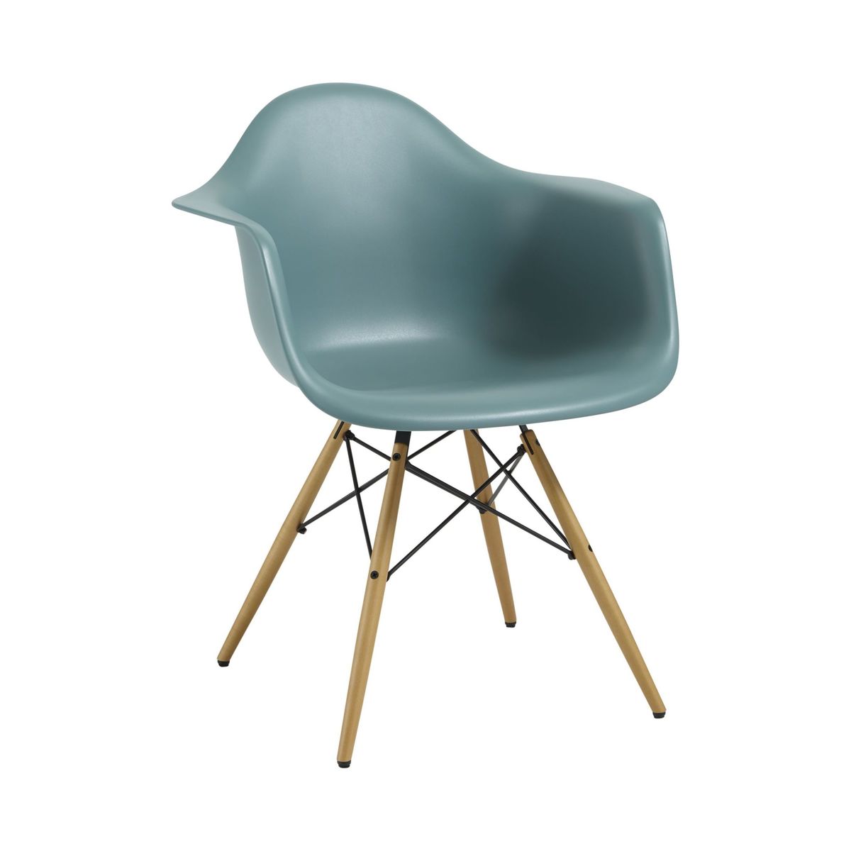 The iconic Vitra Eames DAW armchair is ultra-stylish and beautifully comfortable in design, made from a moulded seat that's designed for every 'body', atop a sturdy maple base. Every colour in the selection complements each other, so you can mix and match to suit your décor. With their new seat height, the Eames DAW armchairs are even better suited for use in combination with contemporary dining tables and interiors. The polypropylene shell is dyed through, so the colour will never fade. Husband and wife team Charles and Ray Eames revolutionised 20th Century furniture design. They combined their respective disciplines in architecture and modern art with low-cost yet durable materials to create perfectly balanced, functional furniture. The Eames’ works have proved to be real ‘designs for life’: they’re iconic art pieces and objects of desire, yet utterly practical.