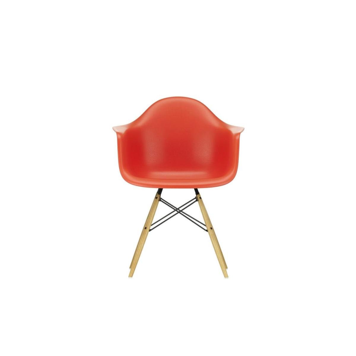 The organic seat, or “shell” as it's often referred to, of this armchair has an organic form that allows for a comfortable sit while still providing firm posture support. On the base, spindly maple legs, available in a range of dark or light finishes, form to create diagonal arches that are attached via durable steel supports. A wonderfully crafted, and fully licensed edition by Vitra, this reproduction adheres strictly to the Eames original design, the only change being the replacement of fibreglass shell for a more environmentally friendly, not to mention hard-wearing, polypropylene seat.