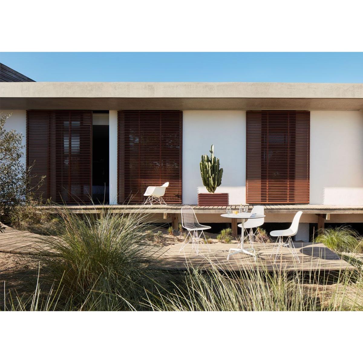 The DKR Wire Chair by Charles and Ray Eames for Vitra echoes the form of the design duo’s Plastic Side Chair. Lending additional functionality and transparency to the design, its iconic plastic shell has been reimagined in wire before being positioned on the legendary 'Eiffel Tower' base. The chair is available in chrome as well as outdoor-suitable white, black and grey powder-coated finishes.