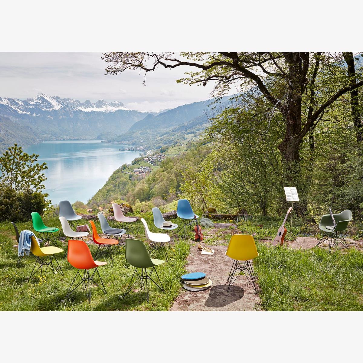 The organic seat, or “shell” as it's often referred to, has an organic form that allows for a comfortable sit while still providing firm posture support. <p>Formed from thin lines of bent steel, the DSR's criss-crossing legs fix directly to the base to provide sturdy support on a seemingly slender frame.<p>A wonderfully crafted, and fully licensed edition by Vitra, this reproduction adheres strictly to the Eames original design - the only change being the replacement of fibreglass shell for an environmentally friendly polypropylene seat.<p>Available in a range of bold and bright colours to suit every kind of interior scheme, the Eames DSR Chair makes a wonderful addition to any home or workspace - whether it's for use in the lounge, dining room, or office.