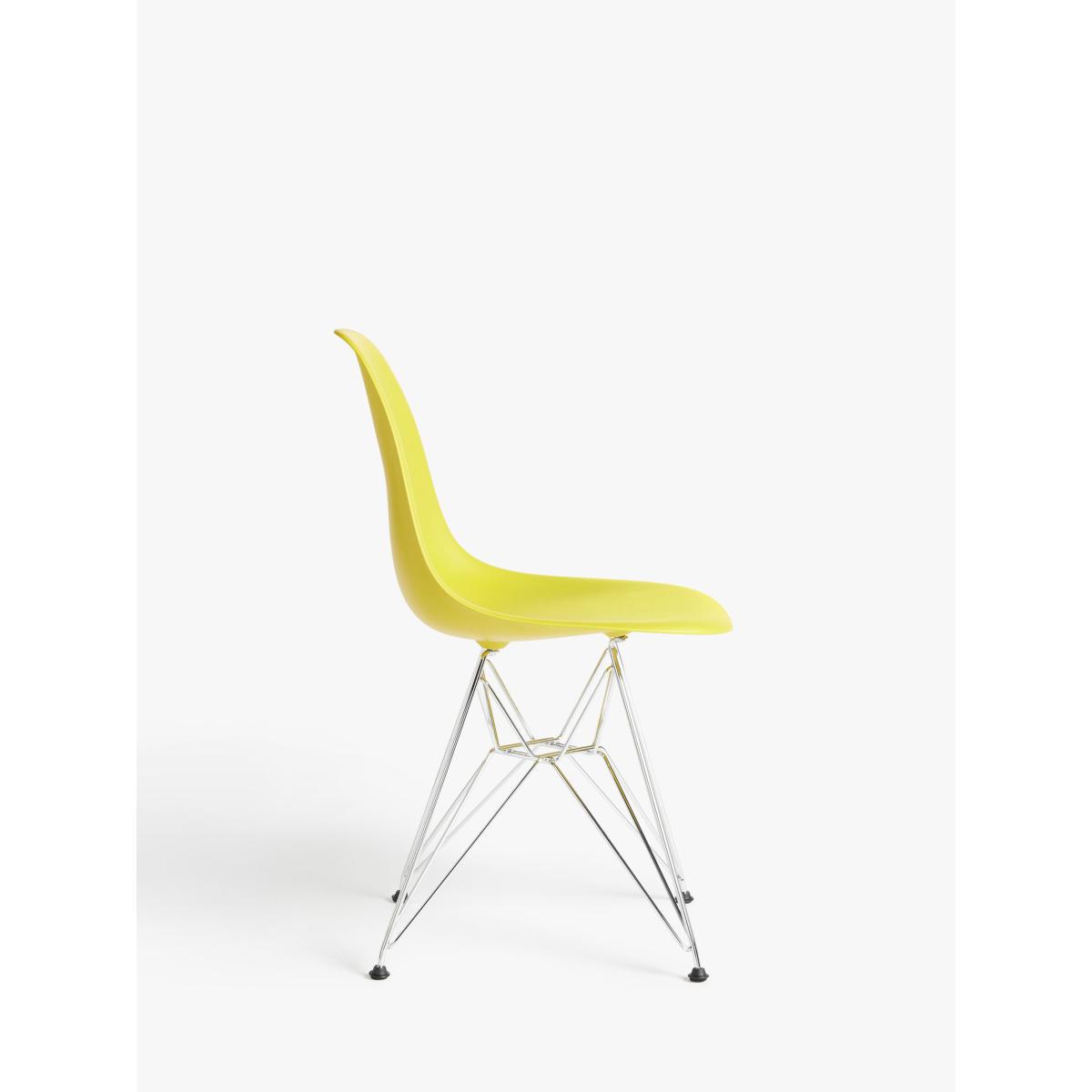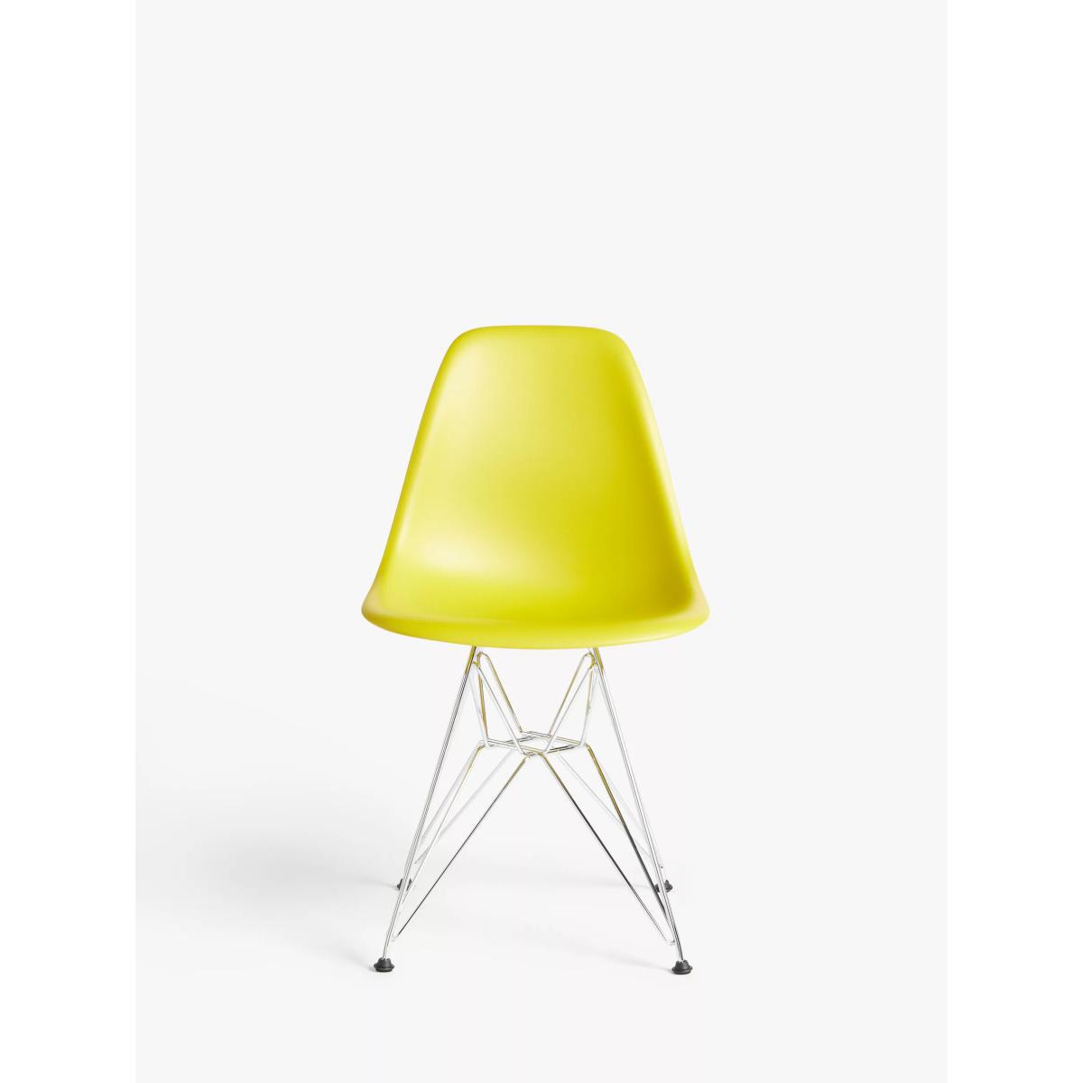 The Eames shell chairs from Vitra were first developed in 1948 as part of an entry for the Museum of Modern Art's 'International Competition for Low-Cost Furniture Design'. Now designed with a 100% recyclable polypropylene shell seat, the Eames chairs today are recognisable, durable and versatile seating solutions for your modern home. The seats are designed in a broad colour palette that refreshes the initial colour set used by Charles and Ray Eames to introduce contemporary bright or neutral tones to your space. All Eames plastic chairs are weather-resistant. This shell seat is supported by a powder-coated chrome metal base and is suitable for outdoor use. Want to see it first? You may want to see and get a feel for the furniture in one of our shops before ordering. We'll be able to tell you where the range you'd like to view is on display.