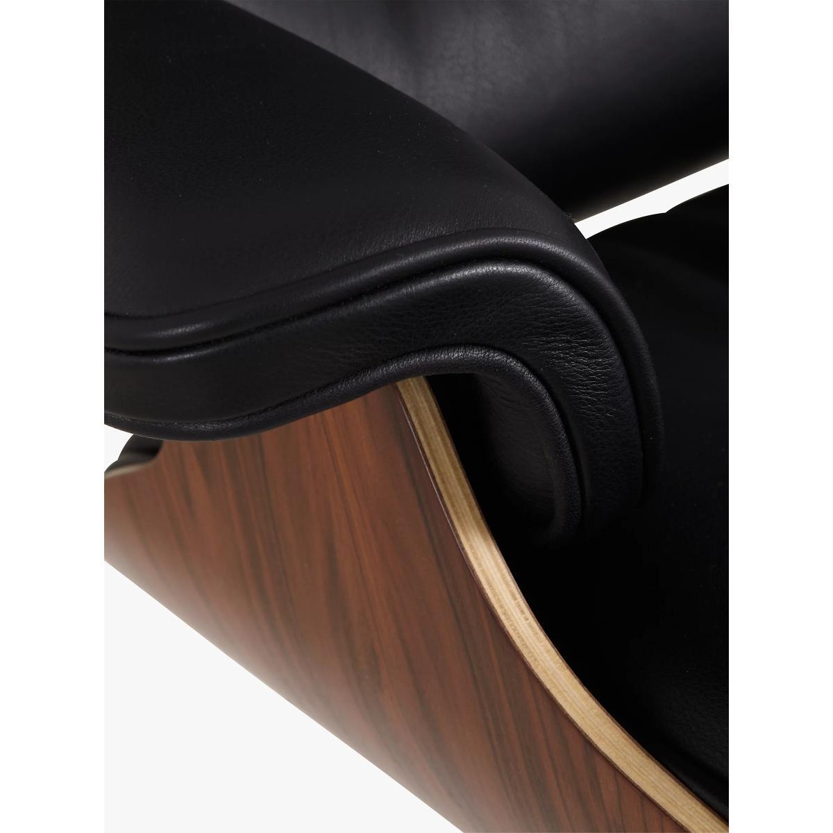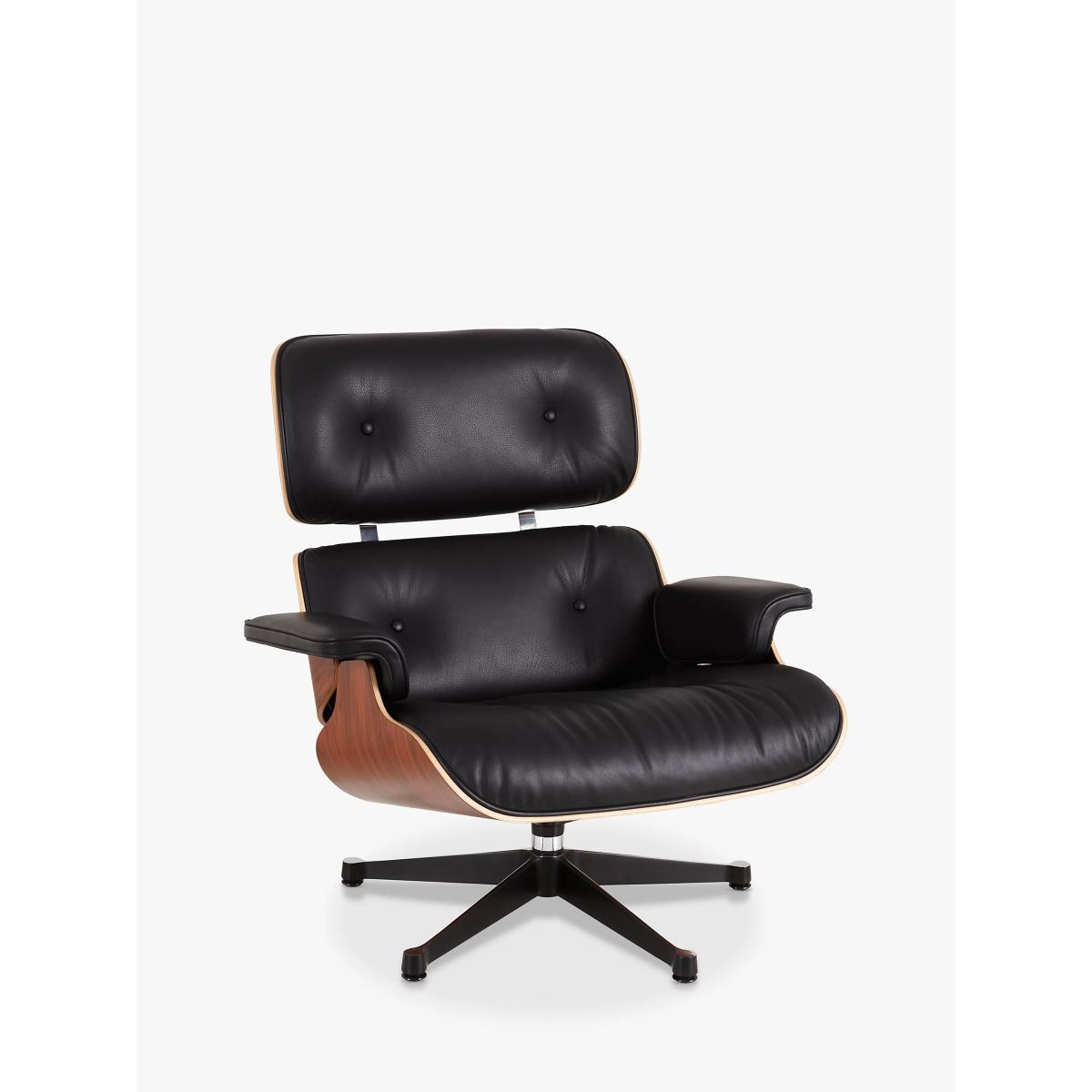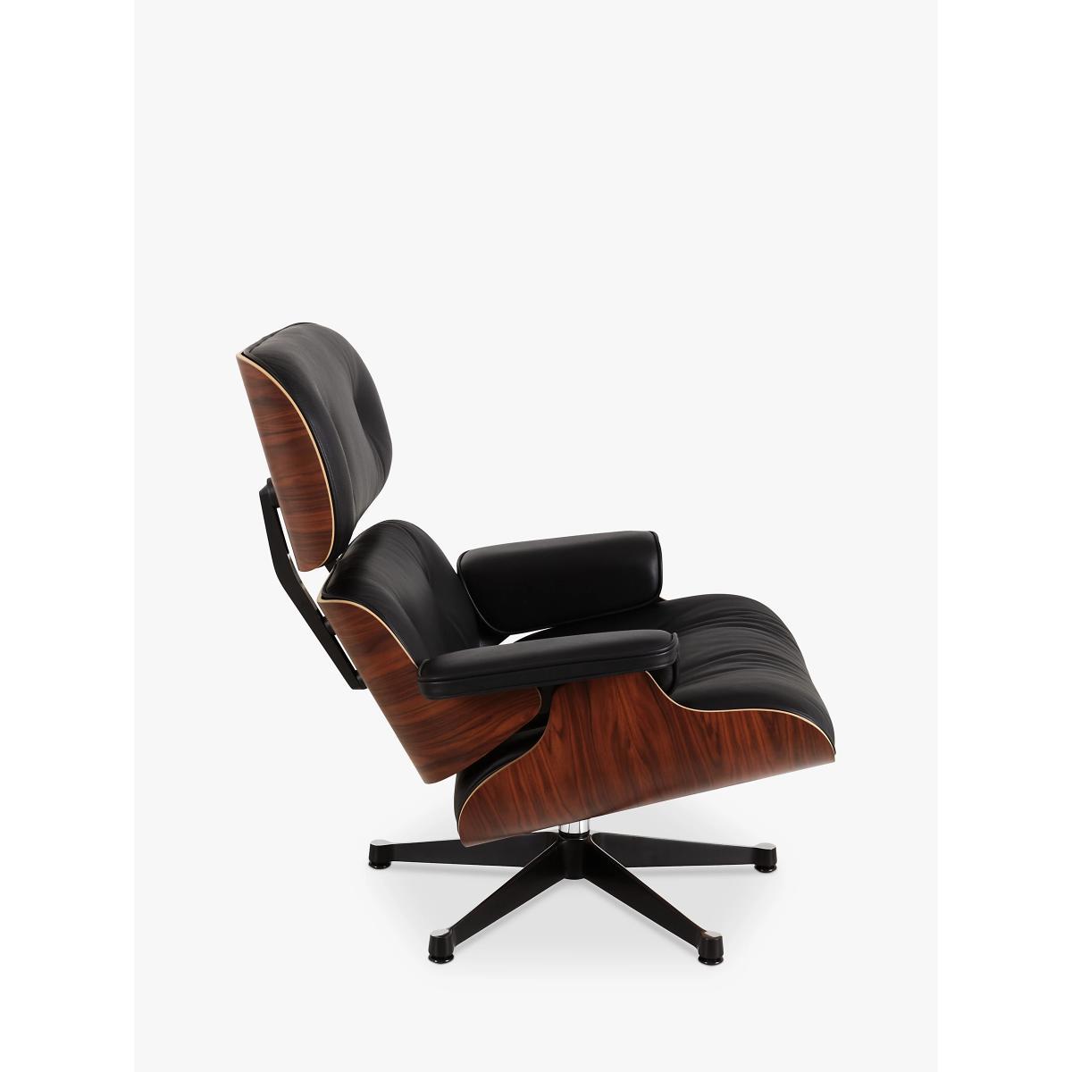 Product Information Available in two sizes, the Lounge chair from Vitra offers a sophisticated and distinctive seating solution for your living room. This Large size is paired with the coordinating ottoman, so you can sink into the seat and relax in ultimate comfort. Upholstered in soft, supple leather, it's well-cushioned with foam that's held in place by a tufted finish for maximum support. Crafted from a moulded plywood and palisander veneer frame that lends a retro-inspired feel, this chair marries high-quality materials with a timeless design. Want to see it first? You may want to see and get a feel for the furniture in one of our shops before ordering. We'll be able to tell you where the range you'd like to view is on display.