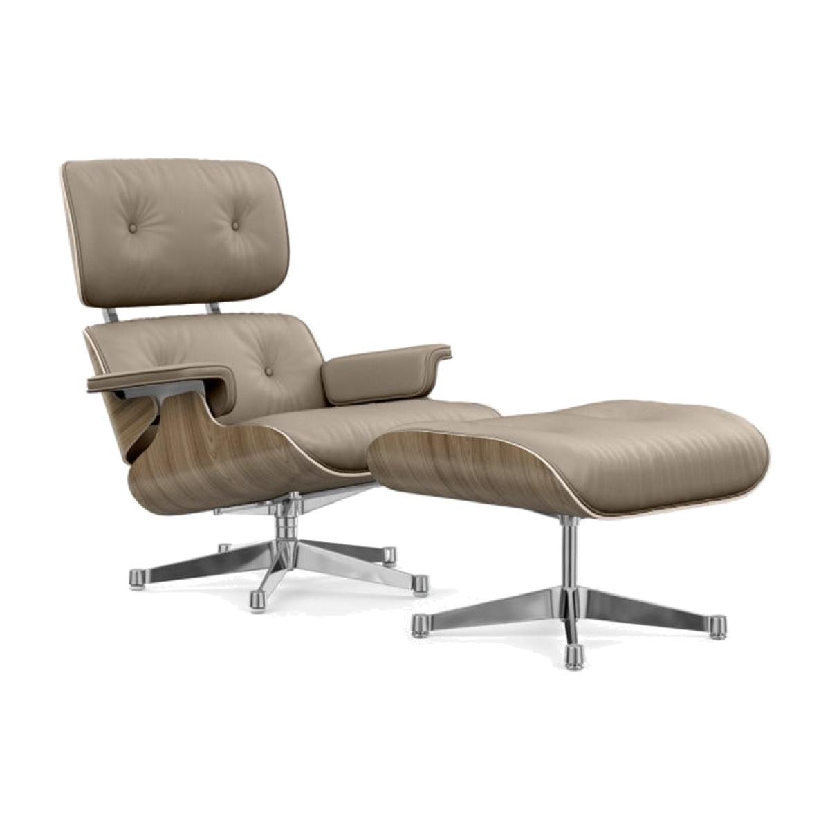 Vitra Eames Lounge Chair & Ottoman Classic Dims White Pig. Walnut Polished Aluminium L.Natural Dark Sand - Heal's UK Furniture