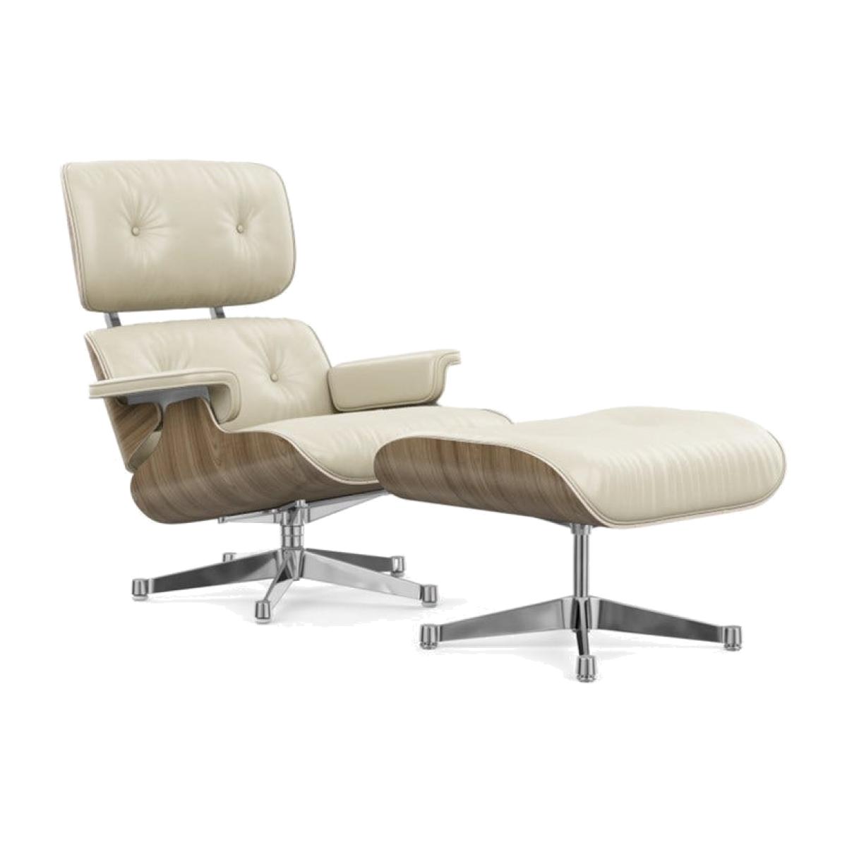 Vitra Eames Lounge Chair & Ottoman Classic Dims White Pig. Walnut Polished Aluminium L.Premium Clay