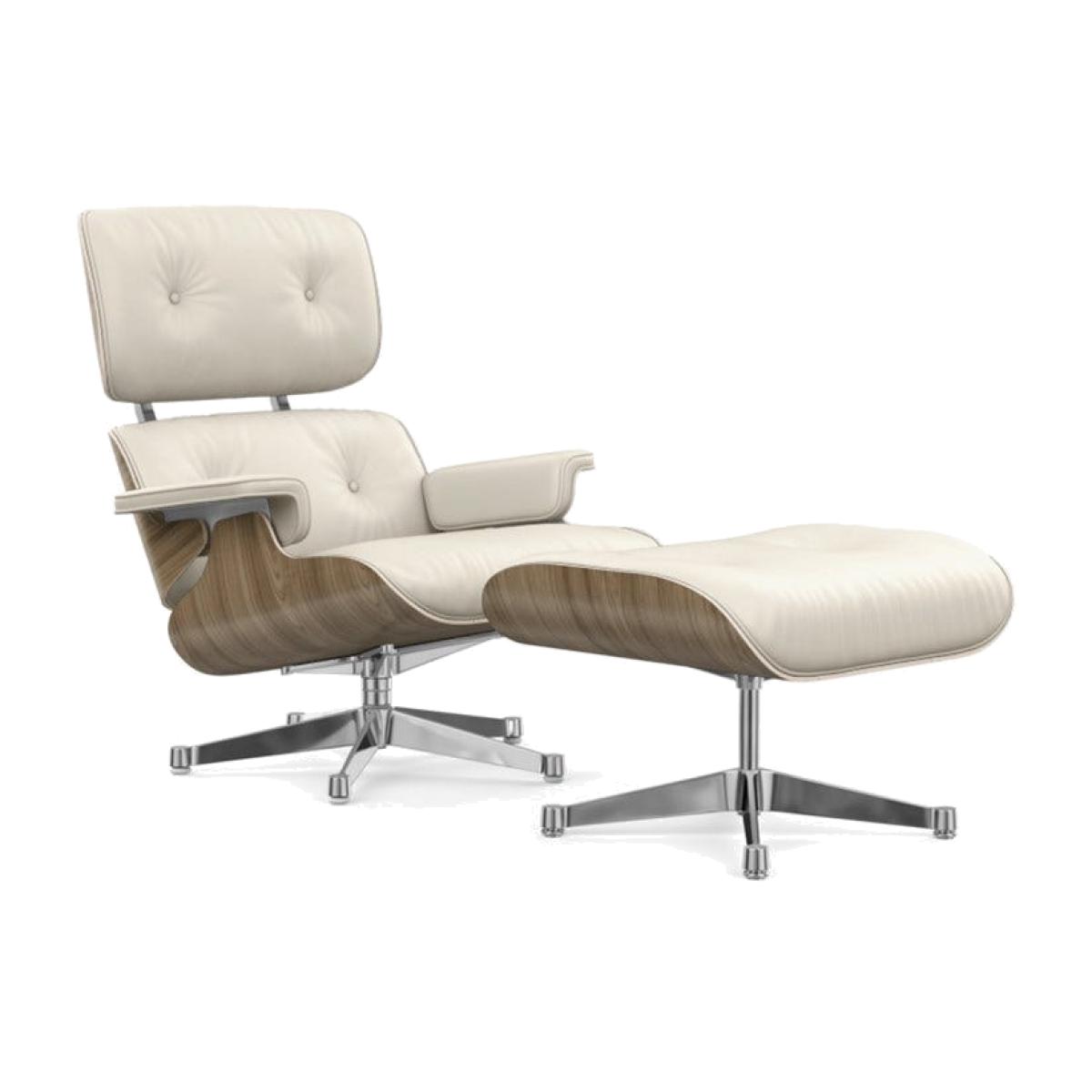 Vitra Eames Lounge Chair & Ottoman New Dims White Pig. Walnut Polished Aluminium L.Premium Snow - Heal's UK Furniture