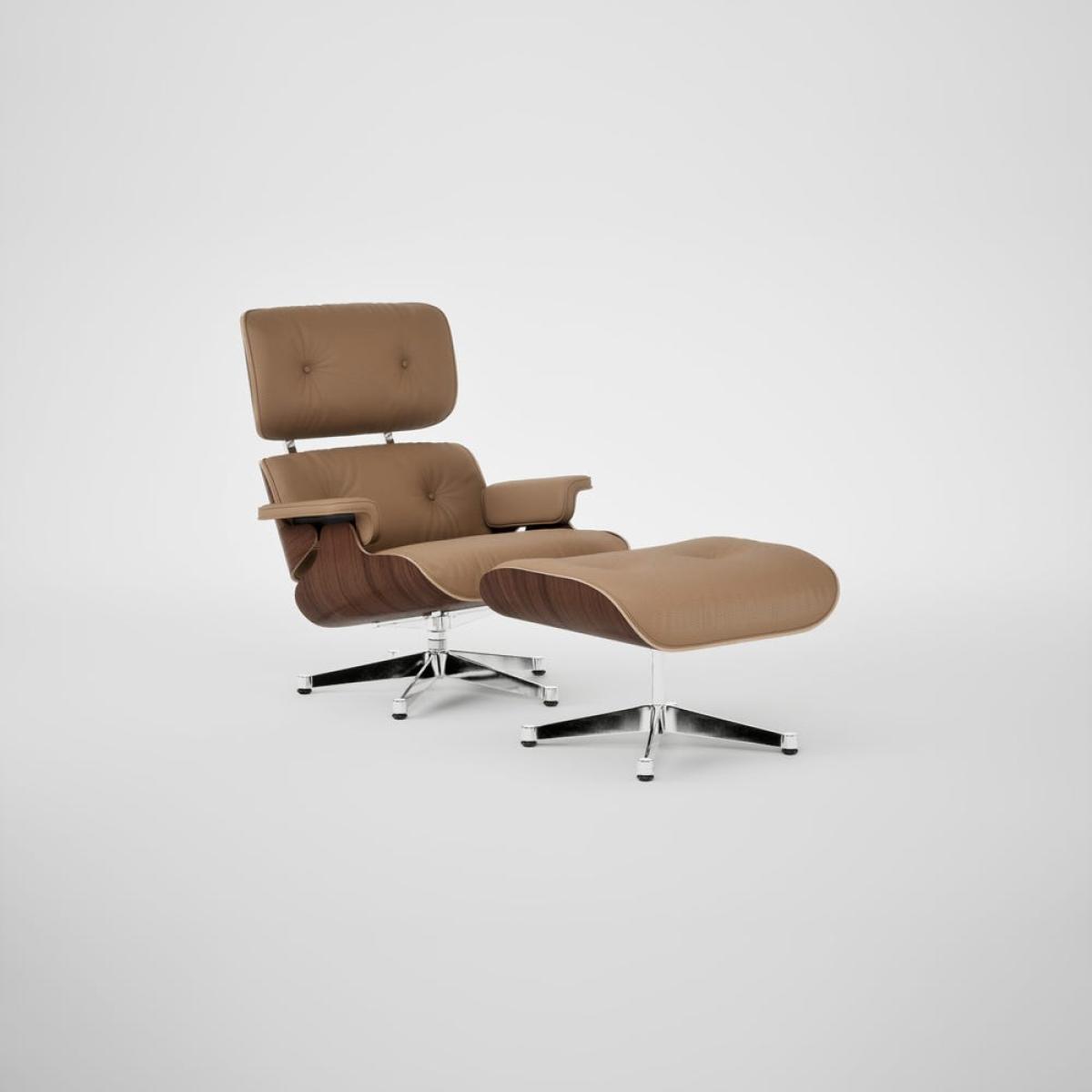 Vitra Eames Lounge Chair & Ottoman Walnut Dark Clas. L50 75 Camel Polished Base 04