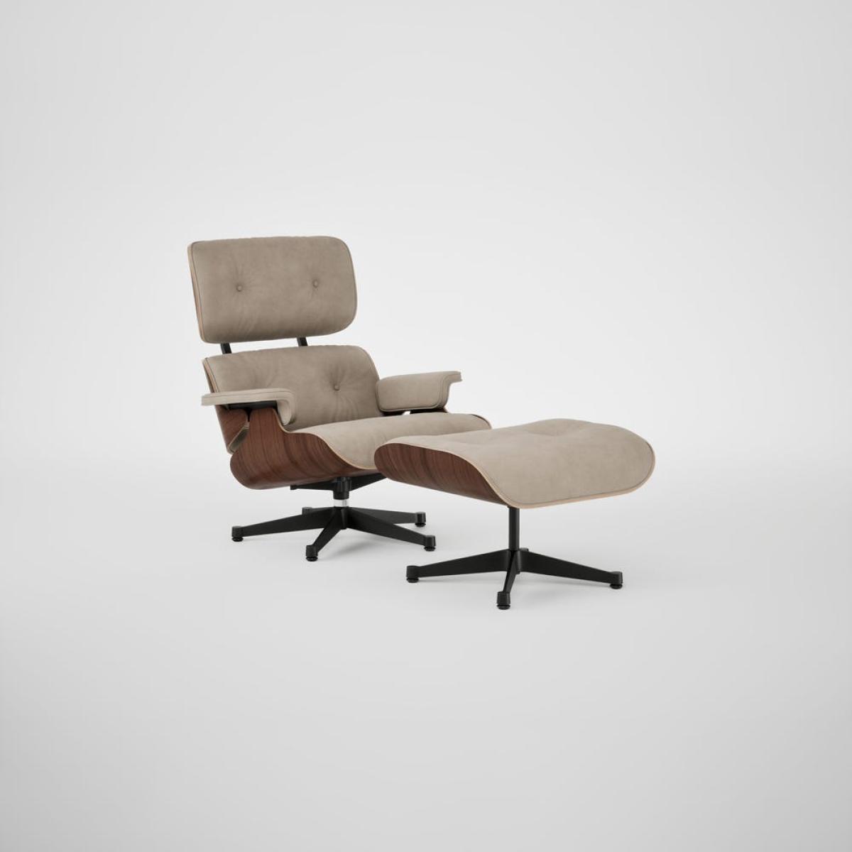 Vitra Eames Lounge Chair & Ottoman Walnut Dark New Dims L60 78 Dark Sand Polished Black Base 04