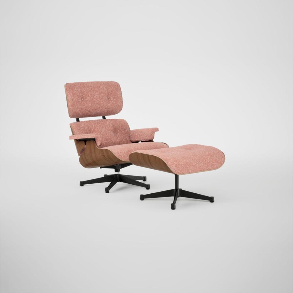 Vitra Eames Lounge Chair & Ottoman Walnut Natural New Dims Nubia 07 Ivory Peach Polished Black Base 05
